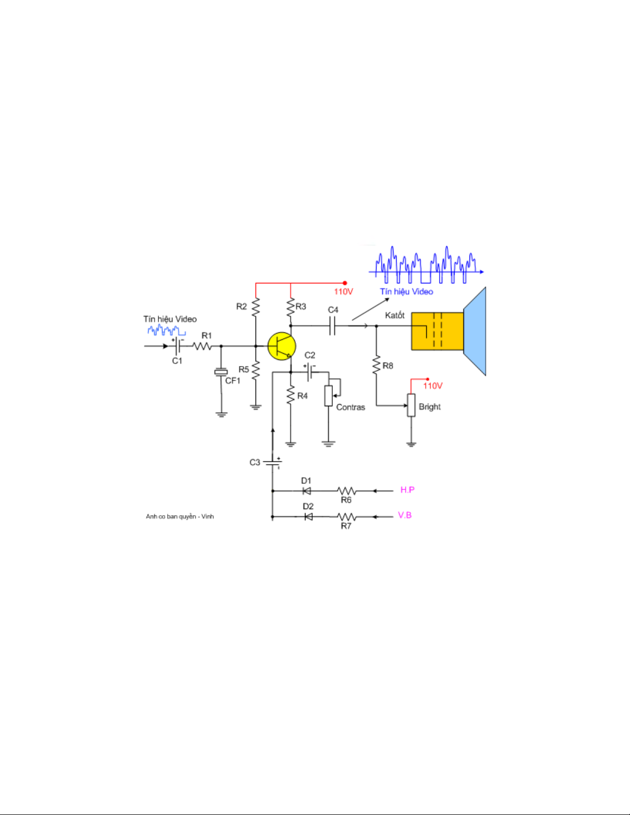 •Xung dòng H.P (Horyontal Pull ) đi qua R6 và D1, xung mành V.B (Vert Blanking) đi