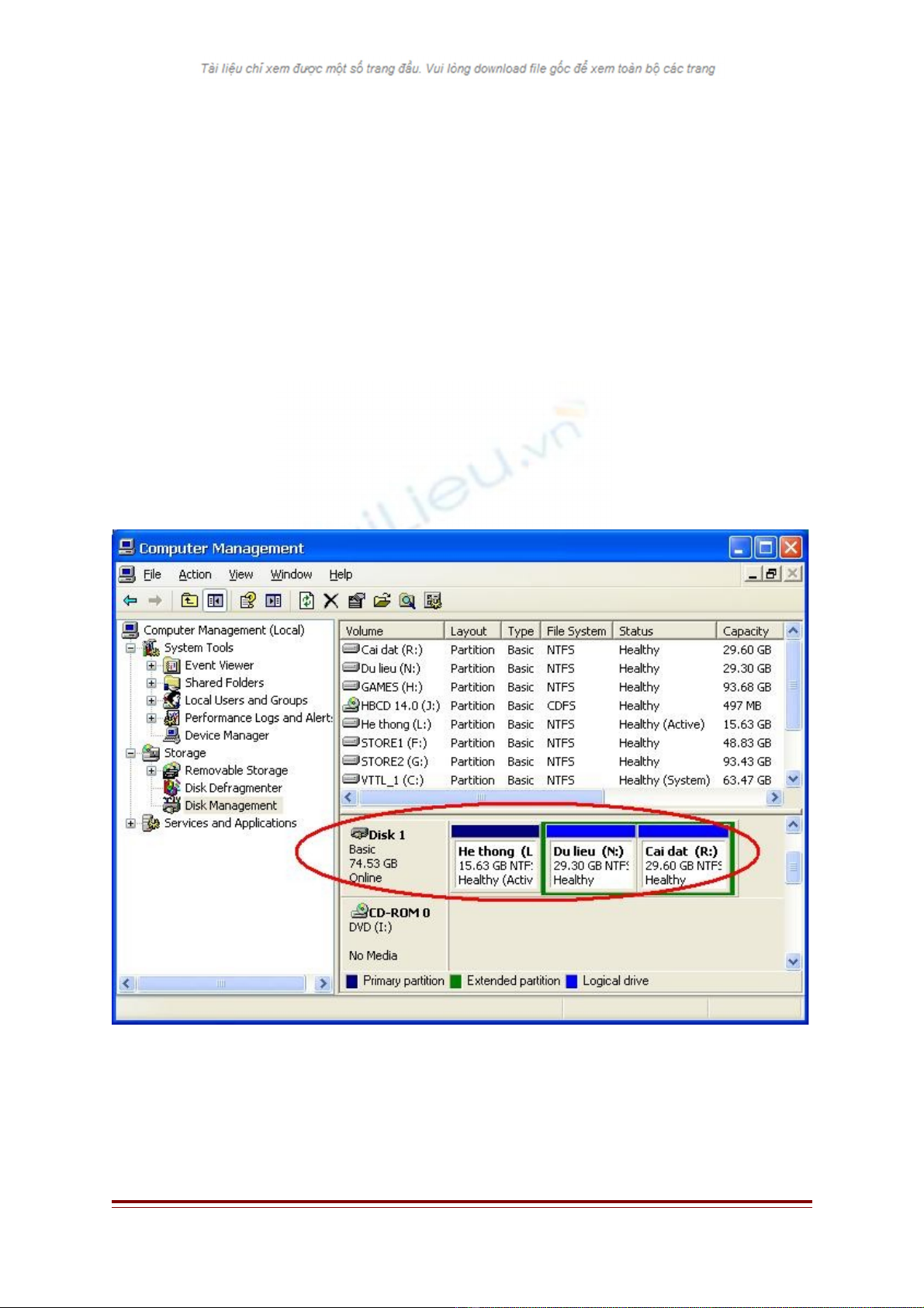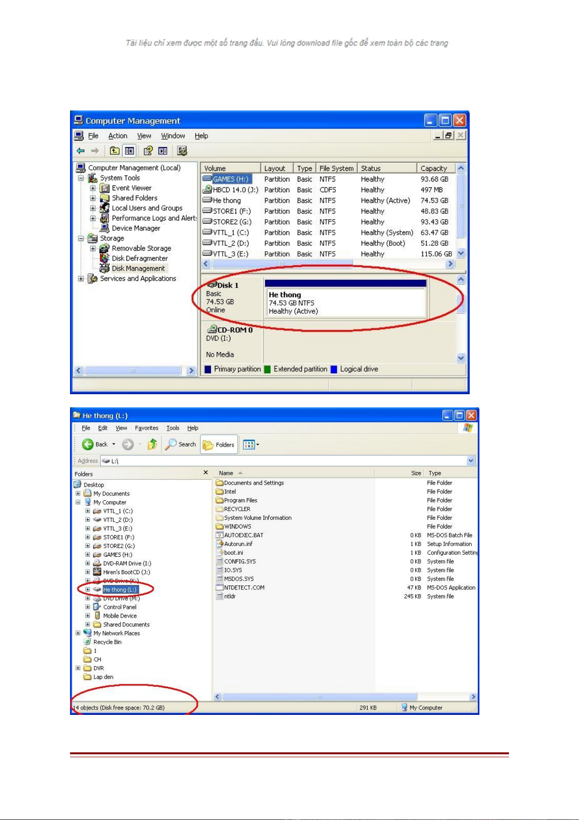 - Kh i đ ng máy bình th ng. Đ a đĩa 80GB vào ki m tra thông tin đ y đ 3 partitionsở ộ ườ ư ổ ể ầ ủ
