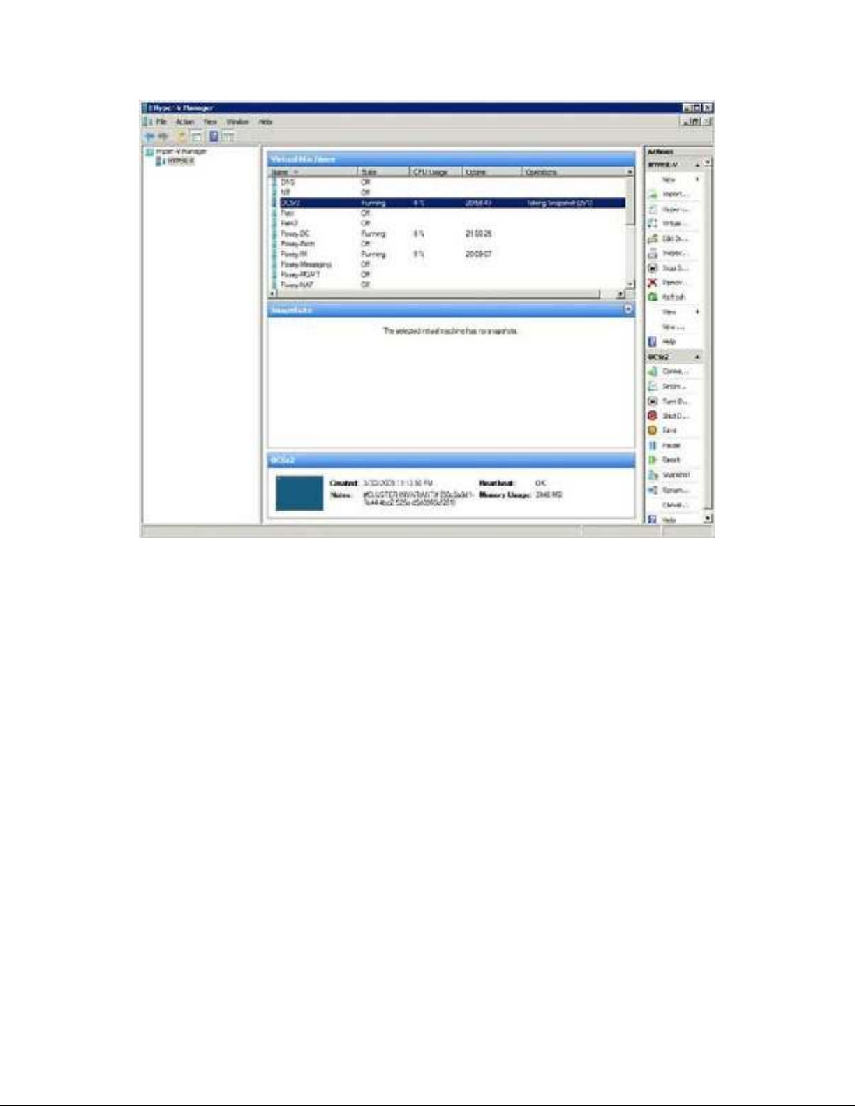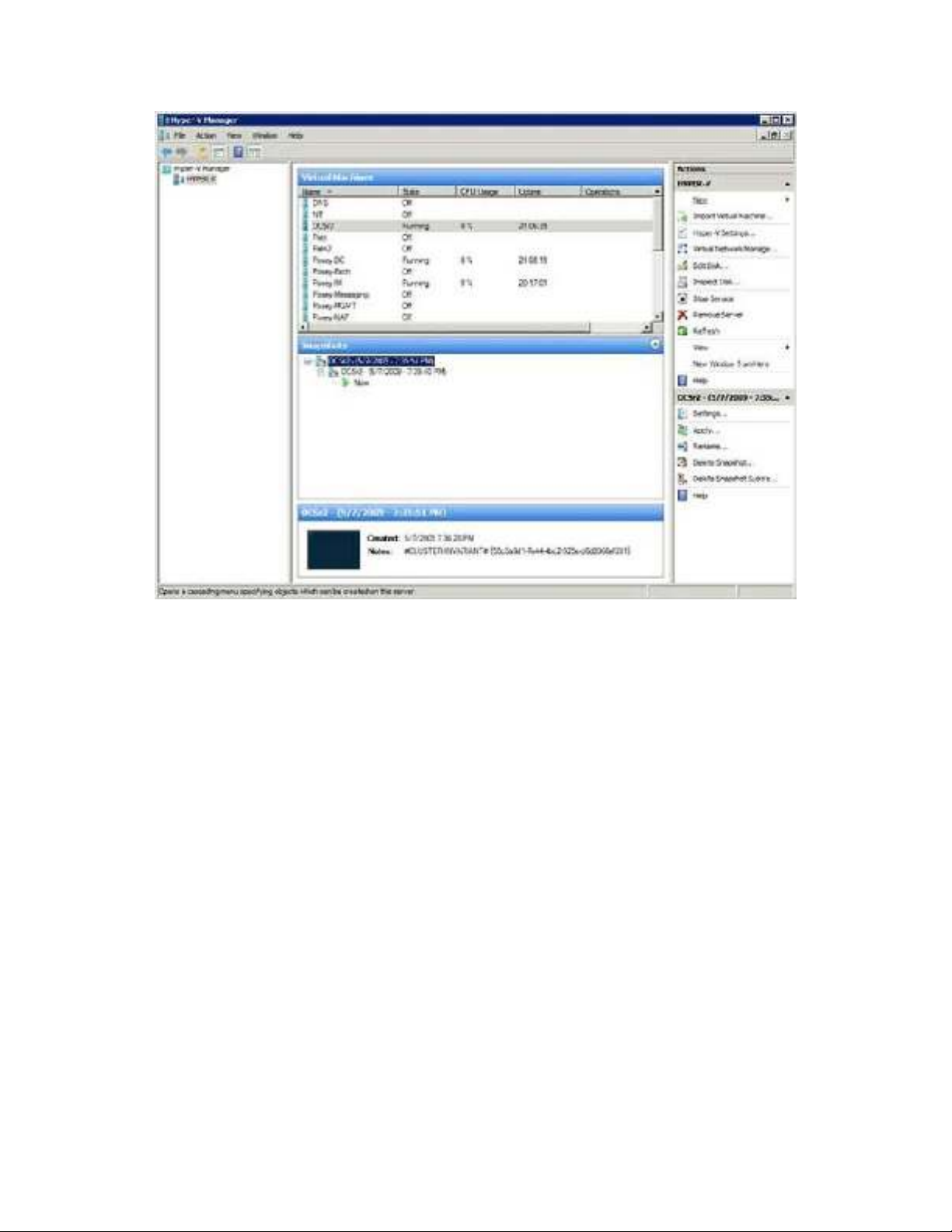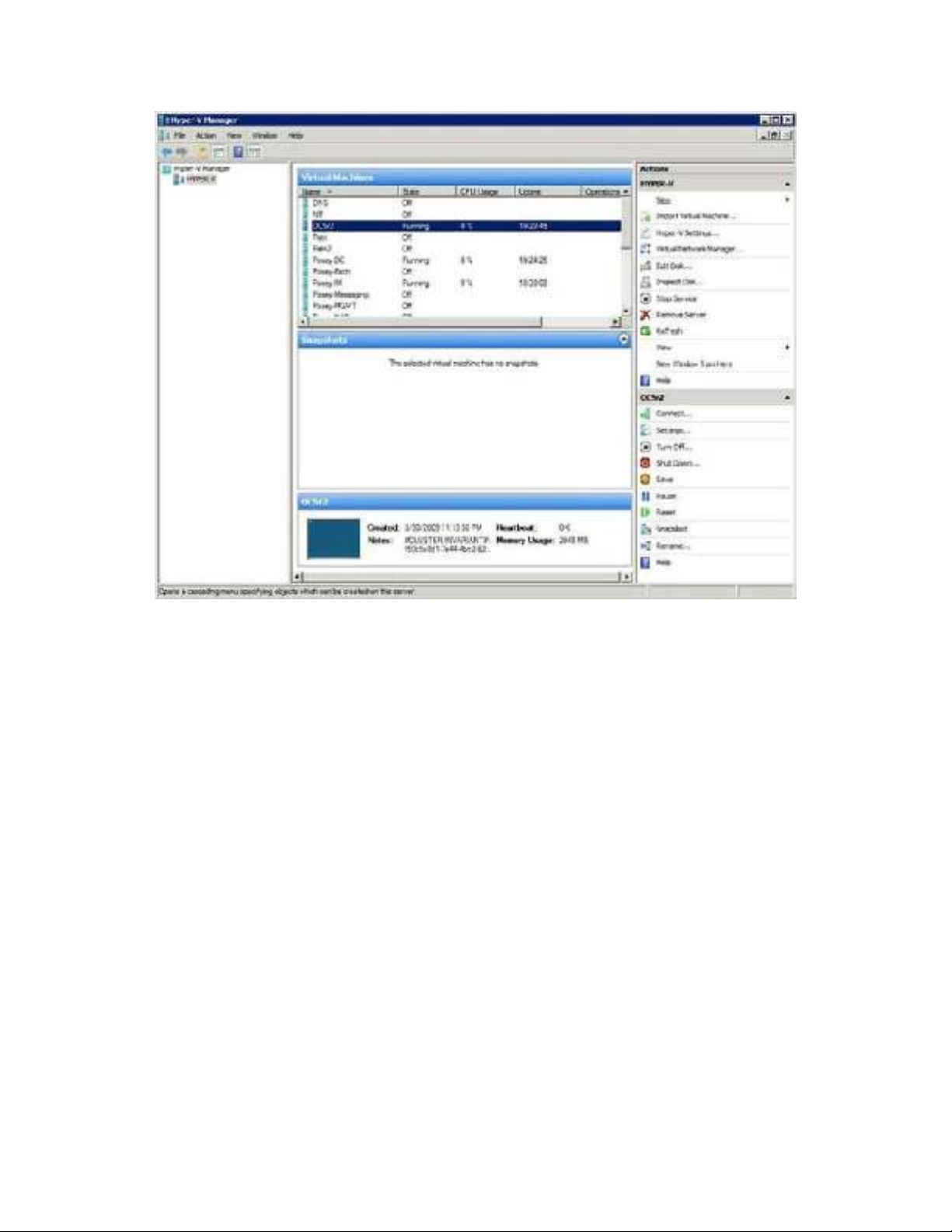 Hyper-V Manager và đã chọn một trong các máy ảo hiện đang hoạt động.