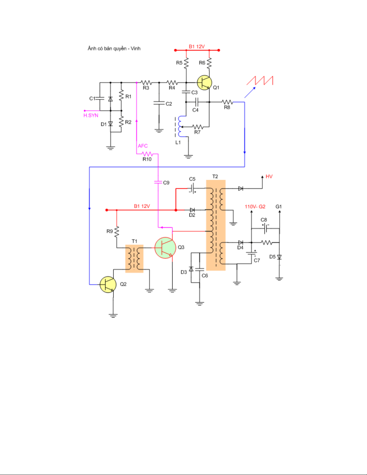 từ cao áp hồi tiếp về để tạo ra điện áp điều khiển, nếu tần số AFC bằng H.syn thì áp