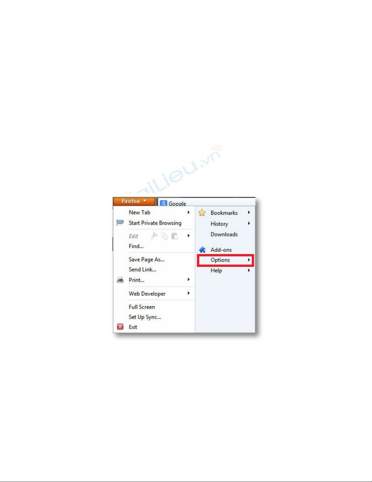 Bước 1: Click t Firefox ở góc trái trên trong trình duyệt Web ca bạn và chọn