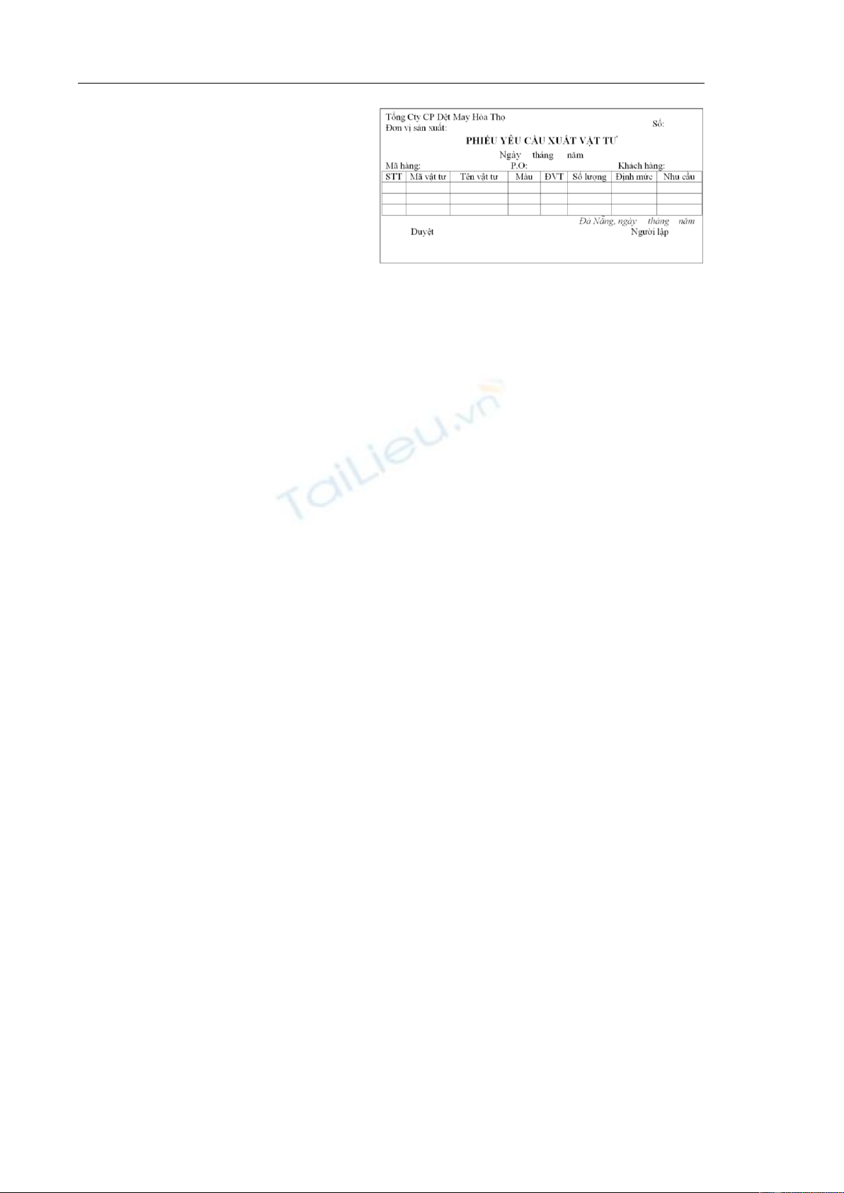 Phiếu yêu cầu sử dụng vật tư; Việc phê chuẩn xuất vật tư phải được lập dựa trên lệnh sản