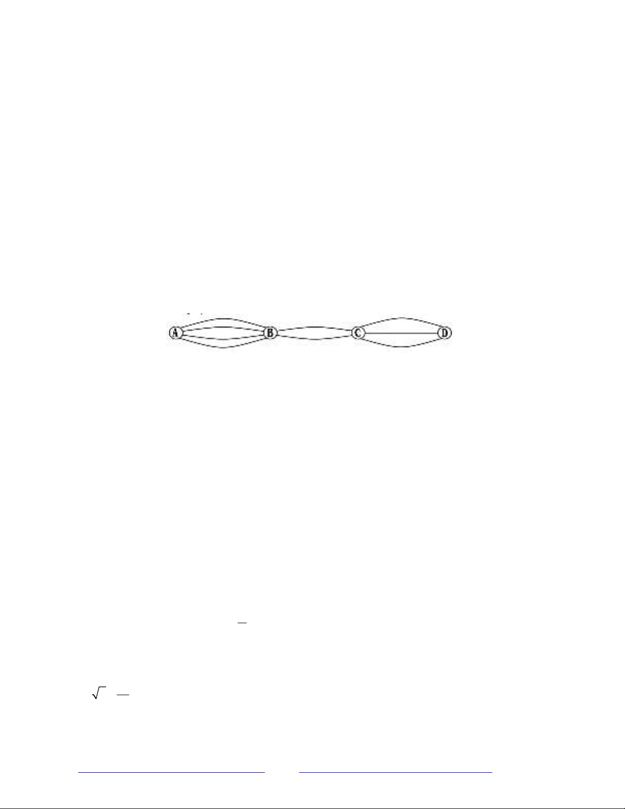 Câu 5: Các thành phố A, B, C, D được nối với nhau bởi các con đường như hình vẽ. Hỏi có bao nhiêu