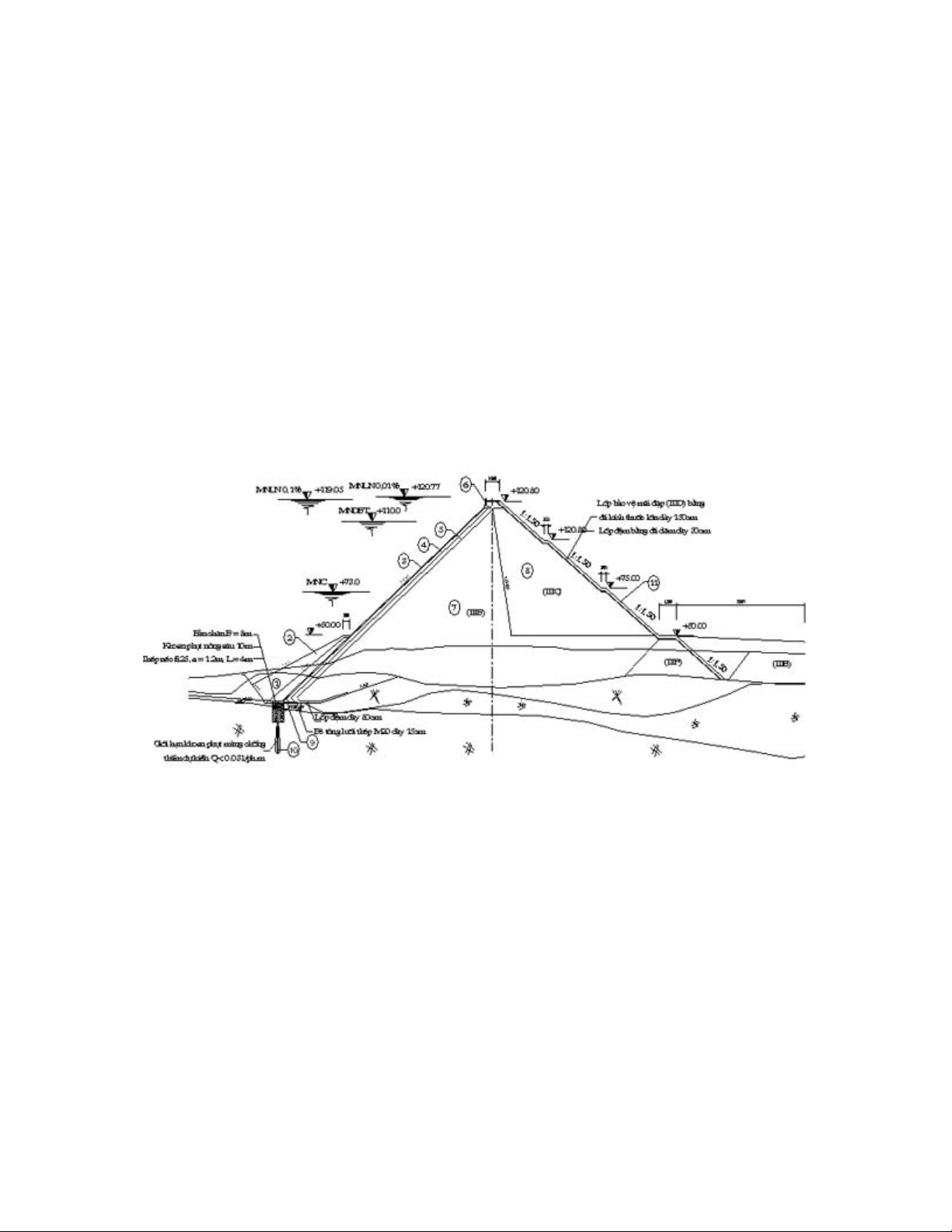 Khối đá chính của đập (IIIB); 8-Khối đá đào móng tận dụng (IIIC); 9- Lớp đệm