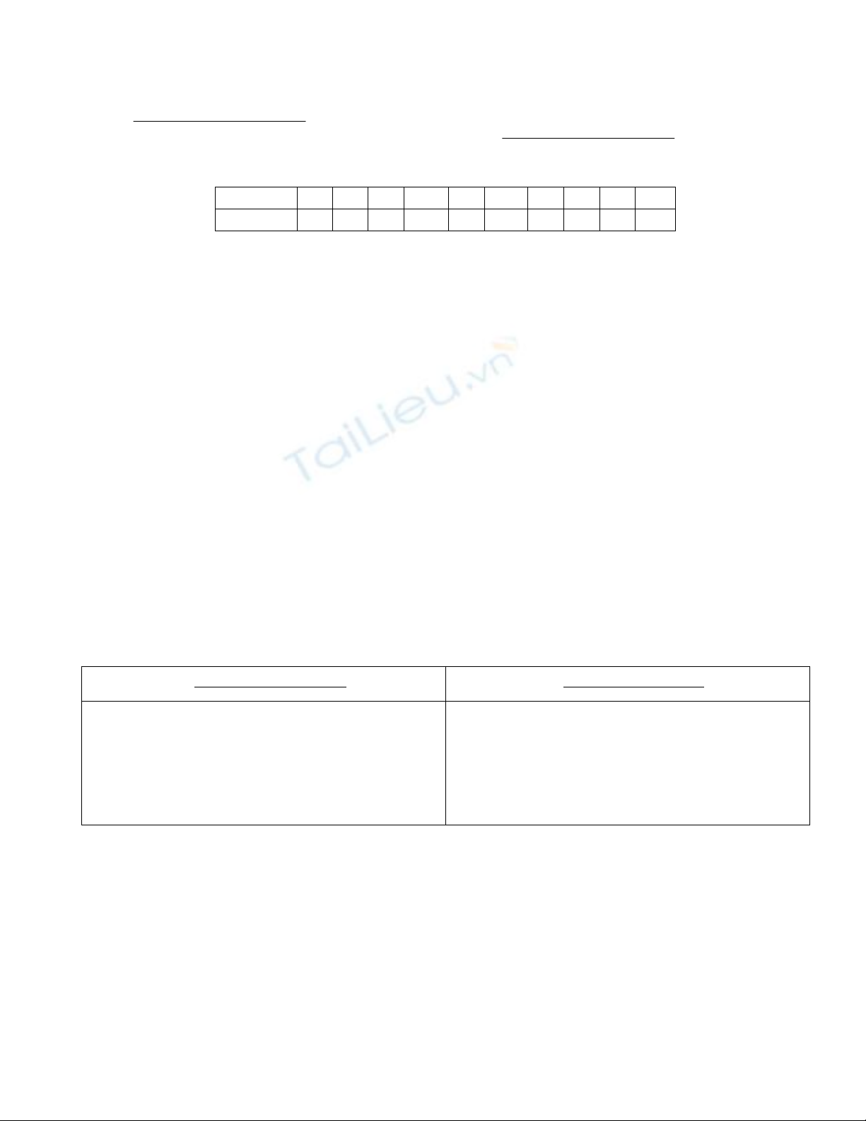 Từ câu 1 đến câu 10 mỗi câu đúng chấm 0,25 điểm: