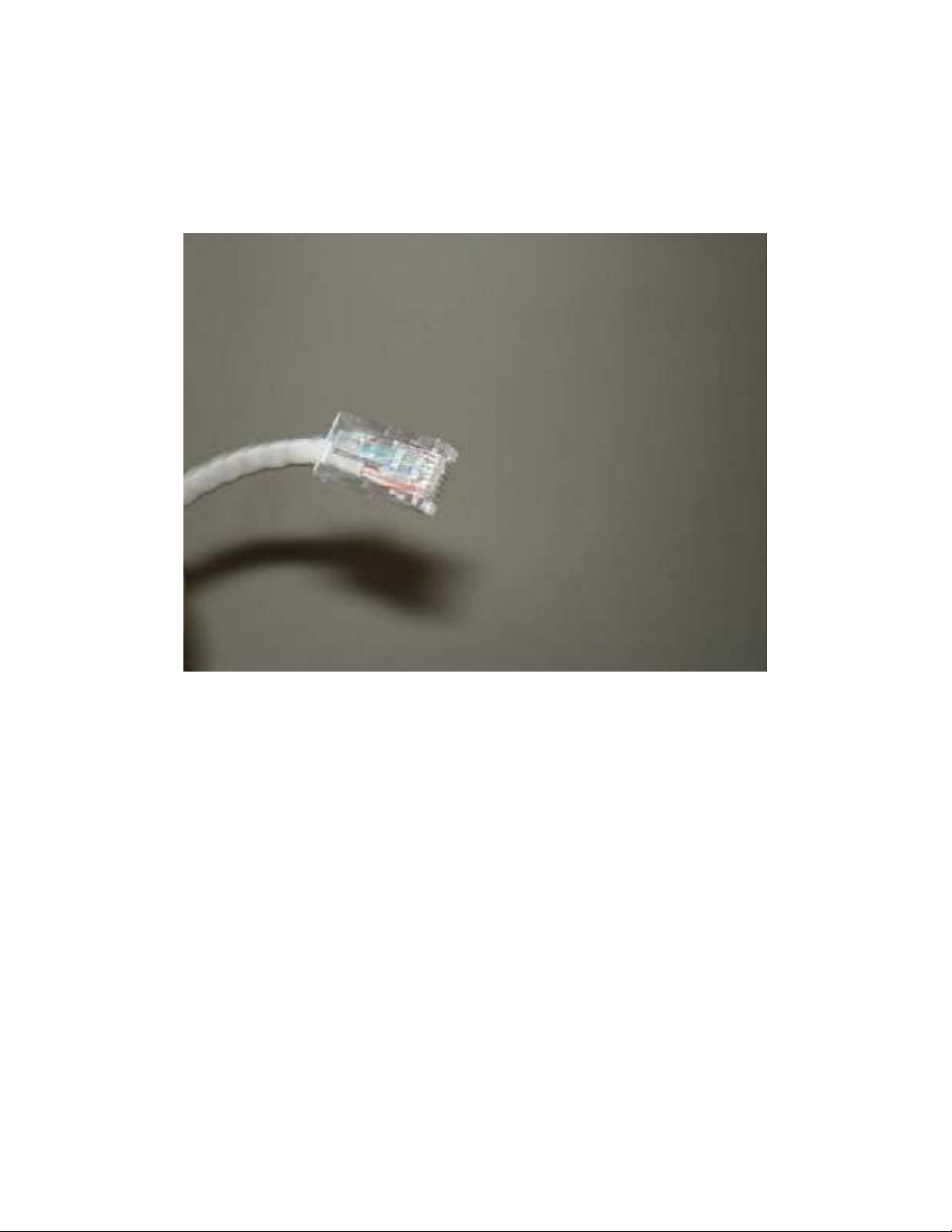 cuối cáp. Cáp RJ-45 trông giống như bộ kết nối ở phần cuối dây điện thoại,