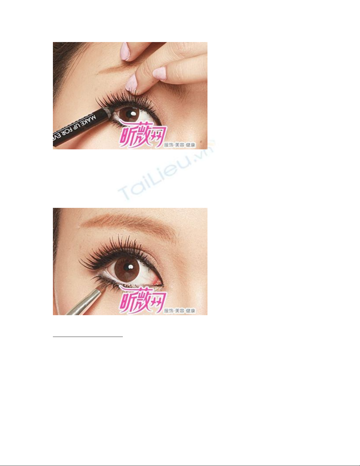 Bước 2: Viền mí mắt bằng bút chì đen để có đôi mắt sắc sảo hơn.