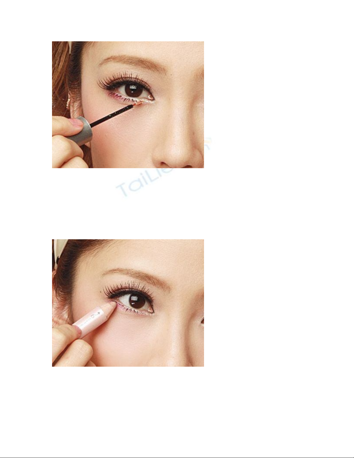 Bước 5: Dùng chì mắt màu hồng viền 1/2 đường kẻ mắt dưới kéo đến đuôi