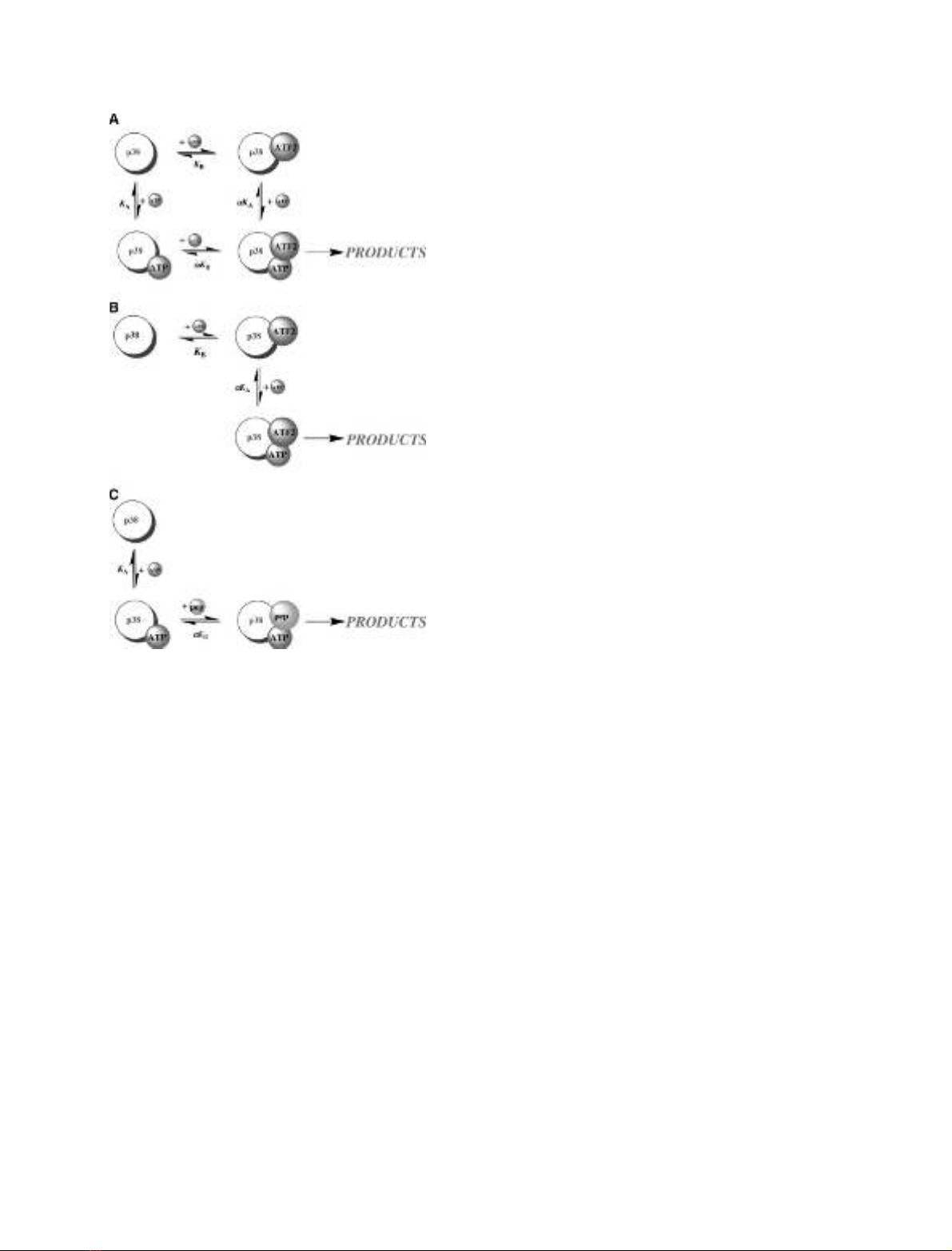 Table 1. Kinetic constants for p38 MAPKaobtained from two-substrate steady-state kinetics, and ATPase activity and inhibition studies. C, competitive; UC, uncompetitive; M, mixed; ND,