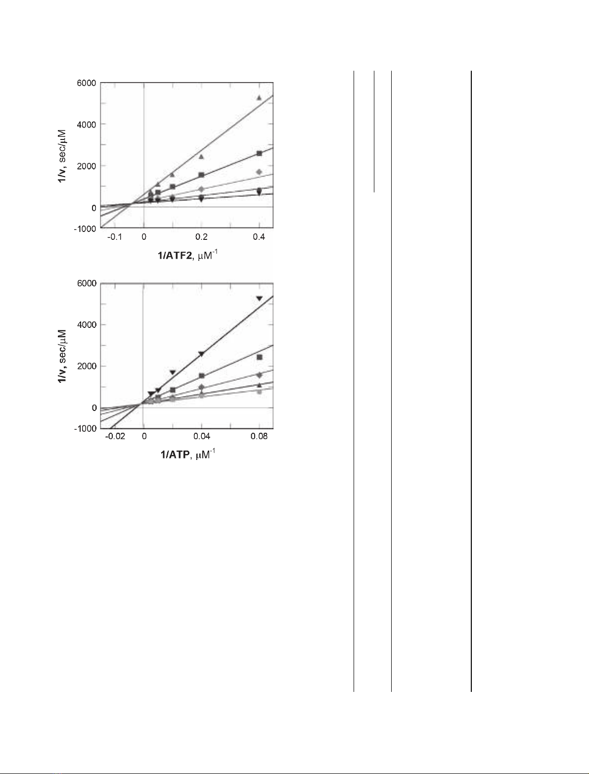 200 lM). (B) Double reciprocal plot of 1 ⁄vversus 1 ⁄ATP at five