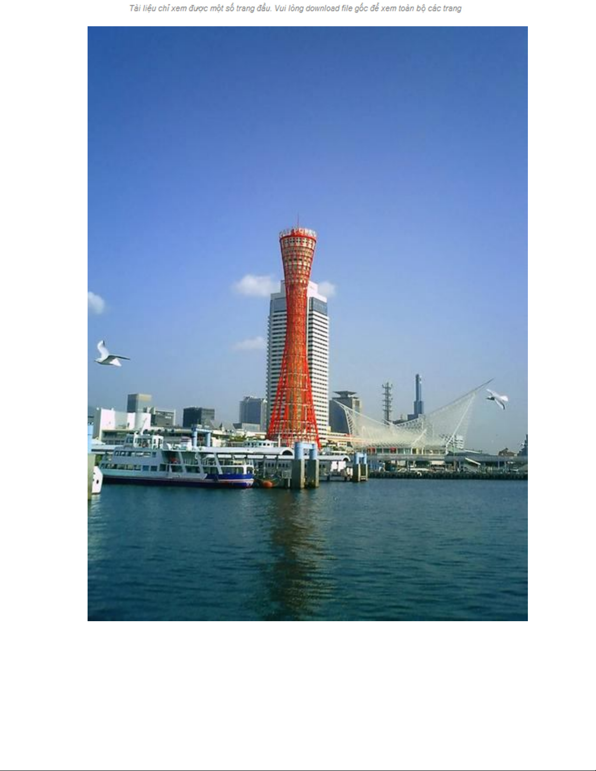 Tháp cảng Kobe nổi bật giữa nền trời với màu sắc đỏ rực.