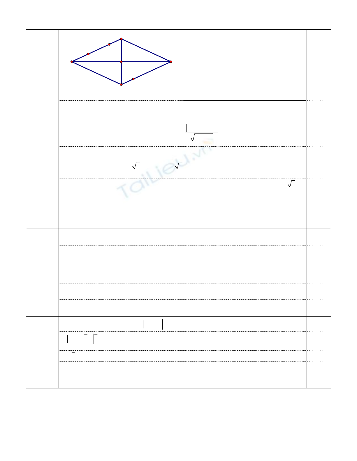 1. Trong mặt phẳng với hệ tọa độ Oxy, cho hình thoi ABCD có tâm I(2;1) và AC = 2BD.