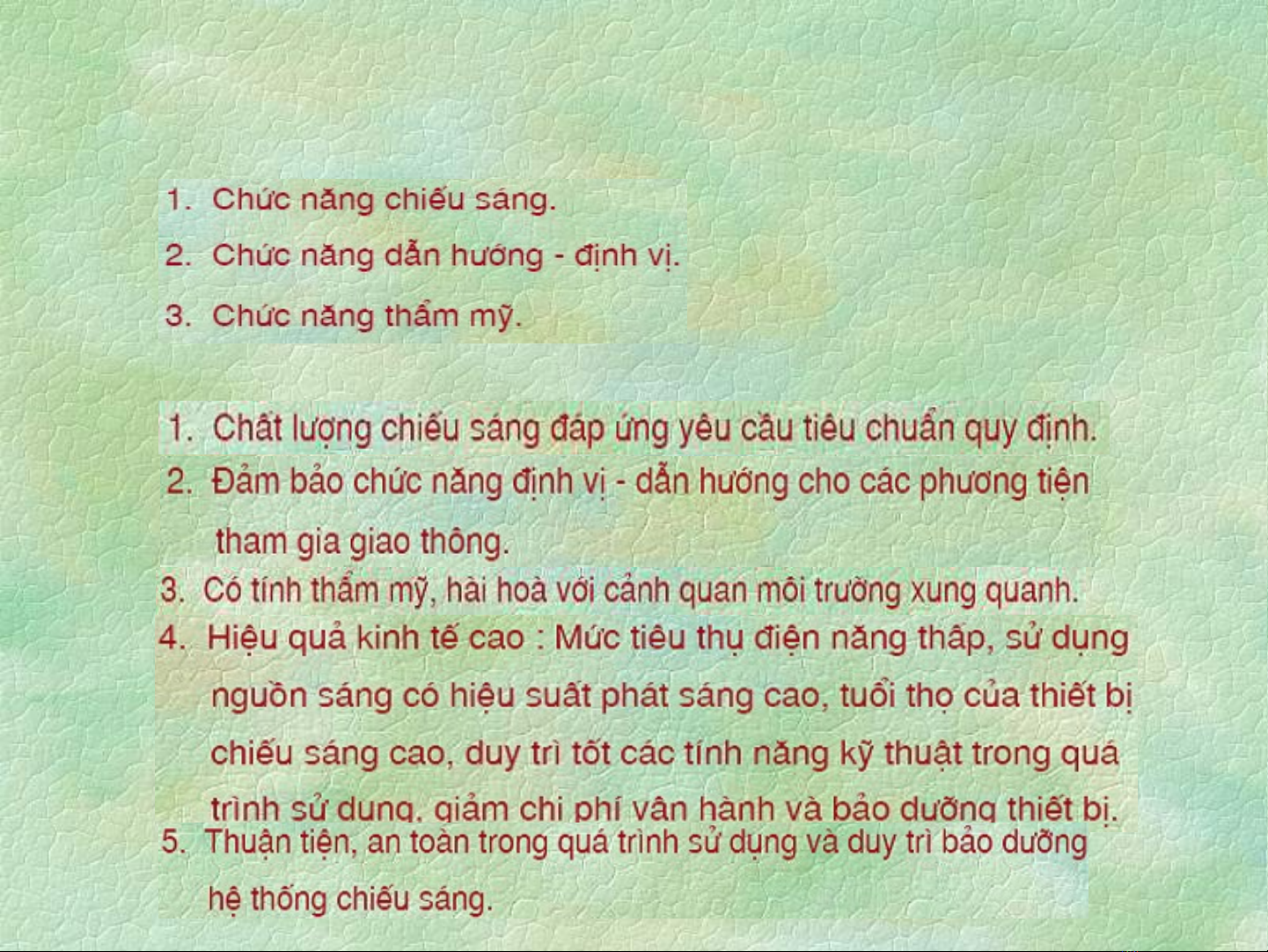 5.2.1 Ch c năng c a chi u sáng đ ngứ ủ ế ườ
