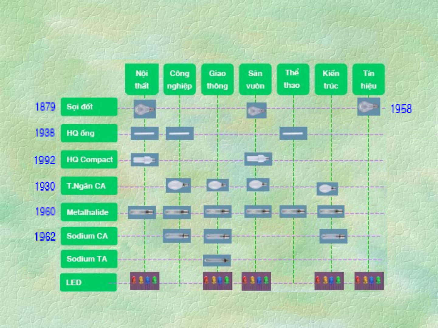 Đánh giá quá trình biến đổi điện năng thành quang năng;