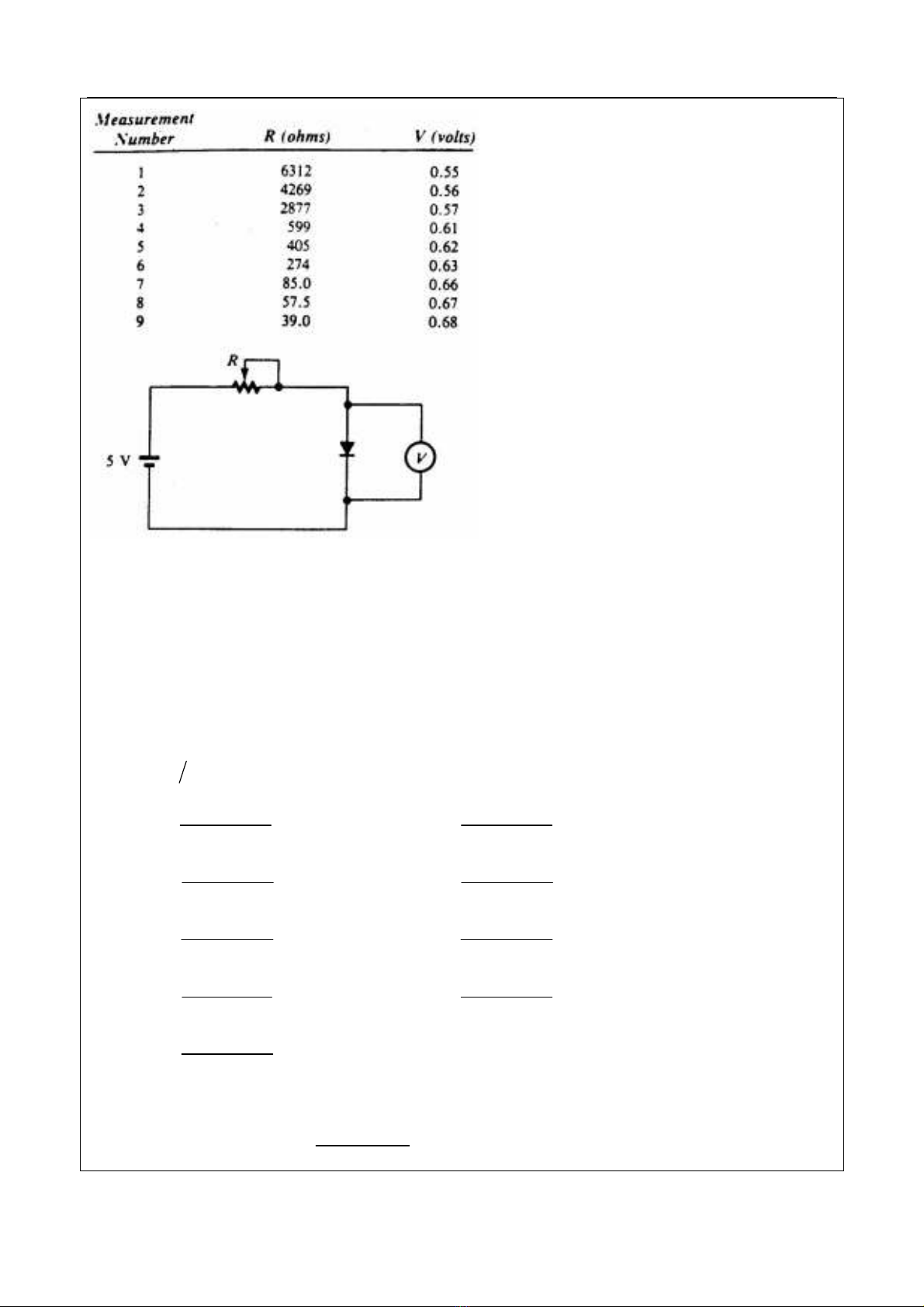 thời điện áp trên diode cũng được ghi lại tại các điểm này. Các kết quả được trình bày trong bảng