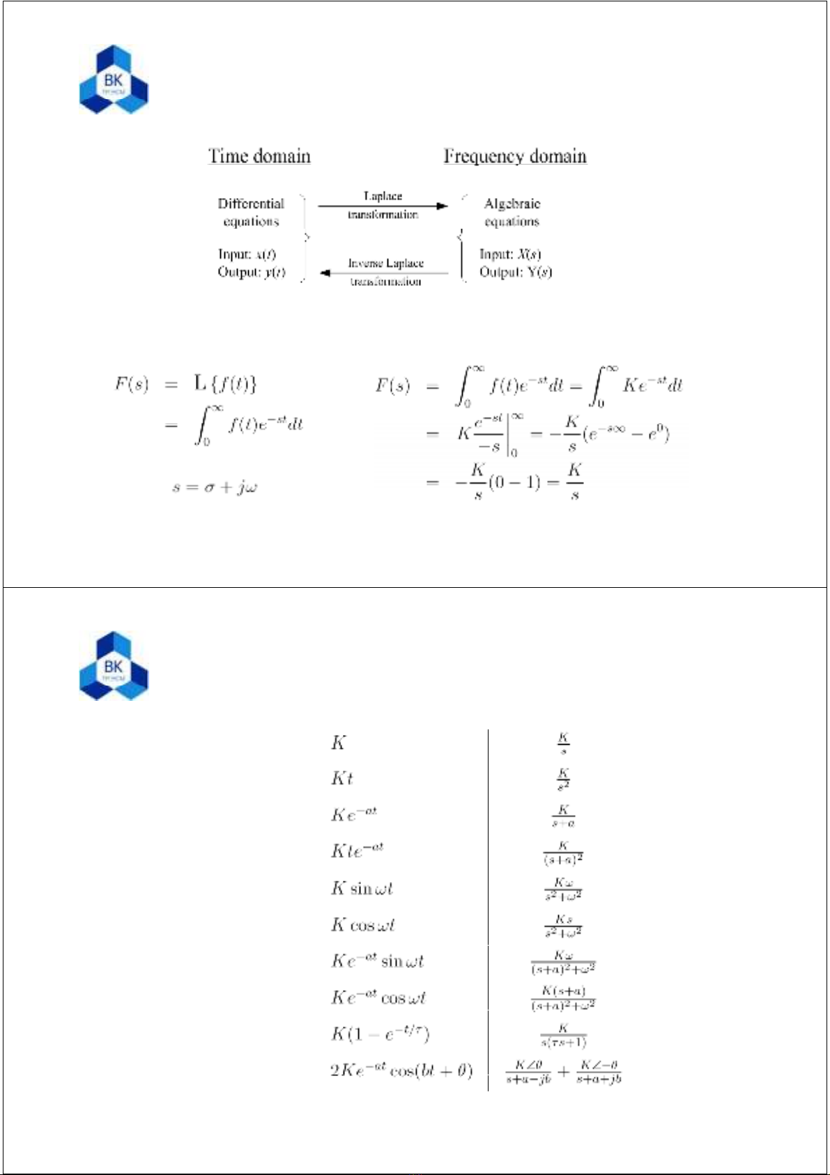 Định nghĩa: Thí dụ: làm phép biến đổi Laplace đối với hàm f(t) = K