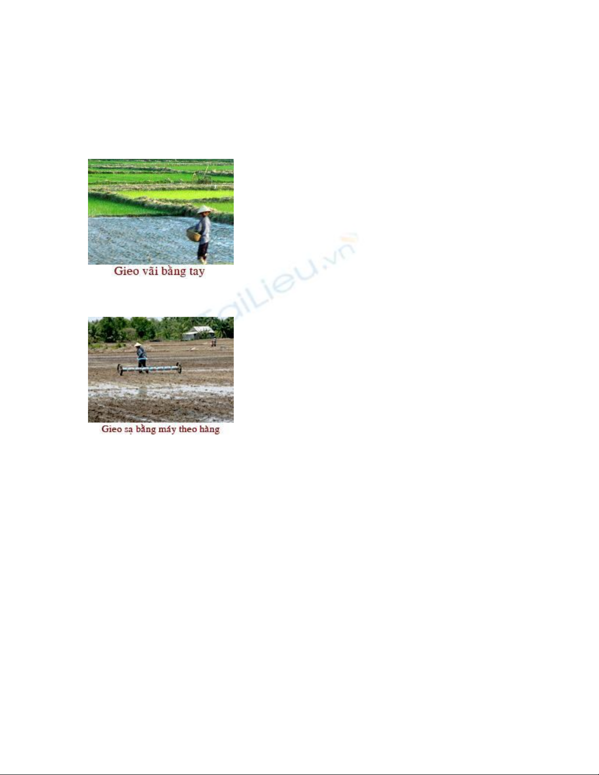 sóc, gieo nặng tay, chìm hạt và đều trên mặt ruộng.