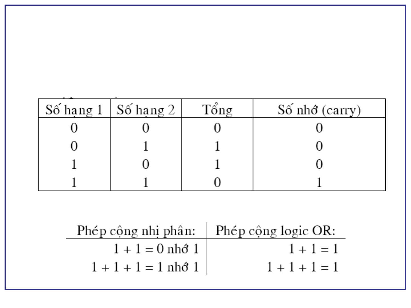 Phân bi t phép c ng nh phân và phép c ng logic OR:ệ ộ ị ộ