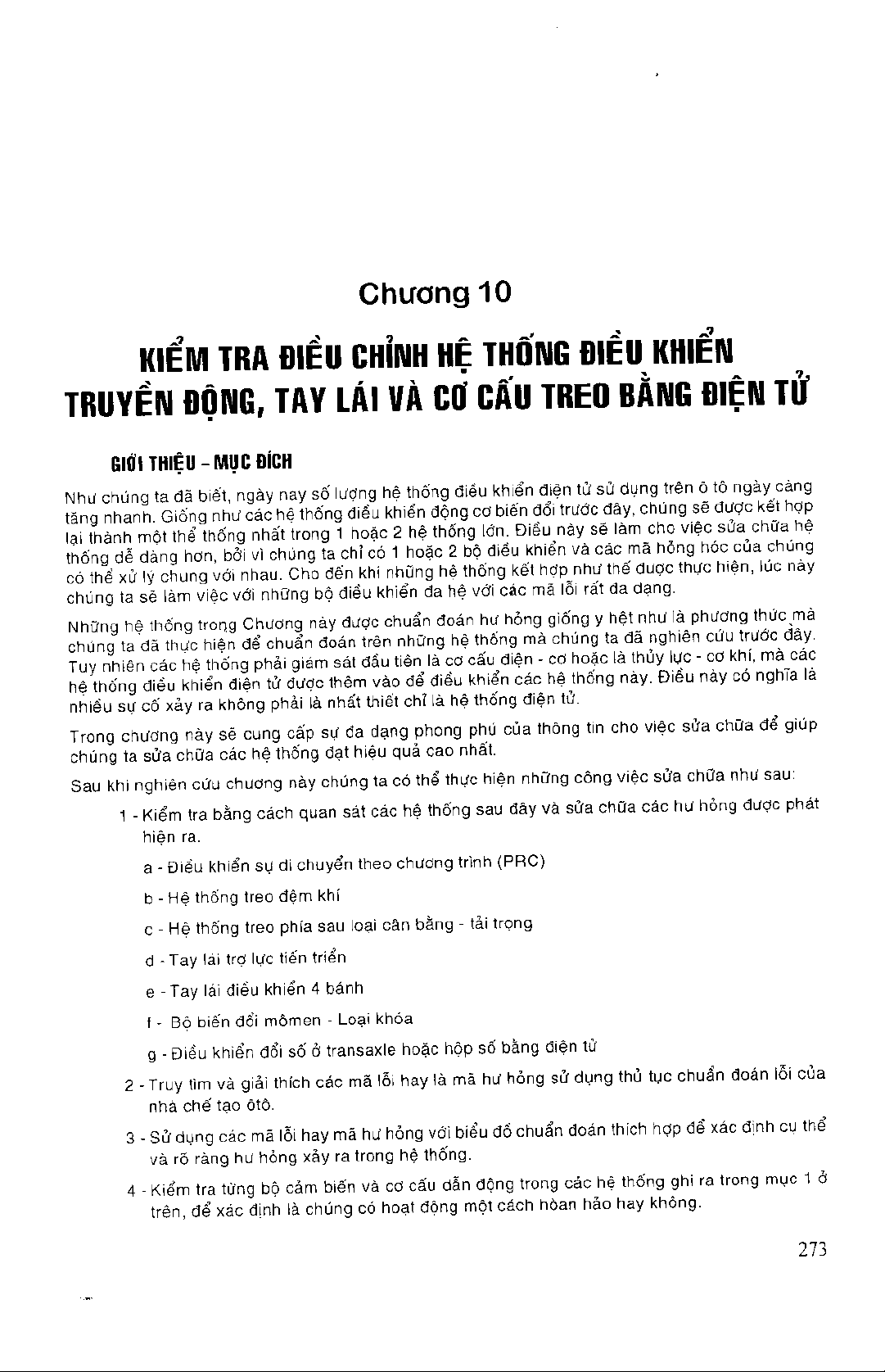 Kỹ thuật sữa chữa hệ thống điện trên ô tô - Chương 10: Kiểm tra điều chỉnh hệ thống điều khiển truyền động, tay lái và cơ cấu treo bằng điện tử