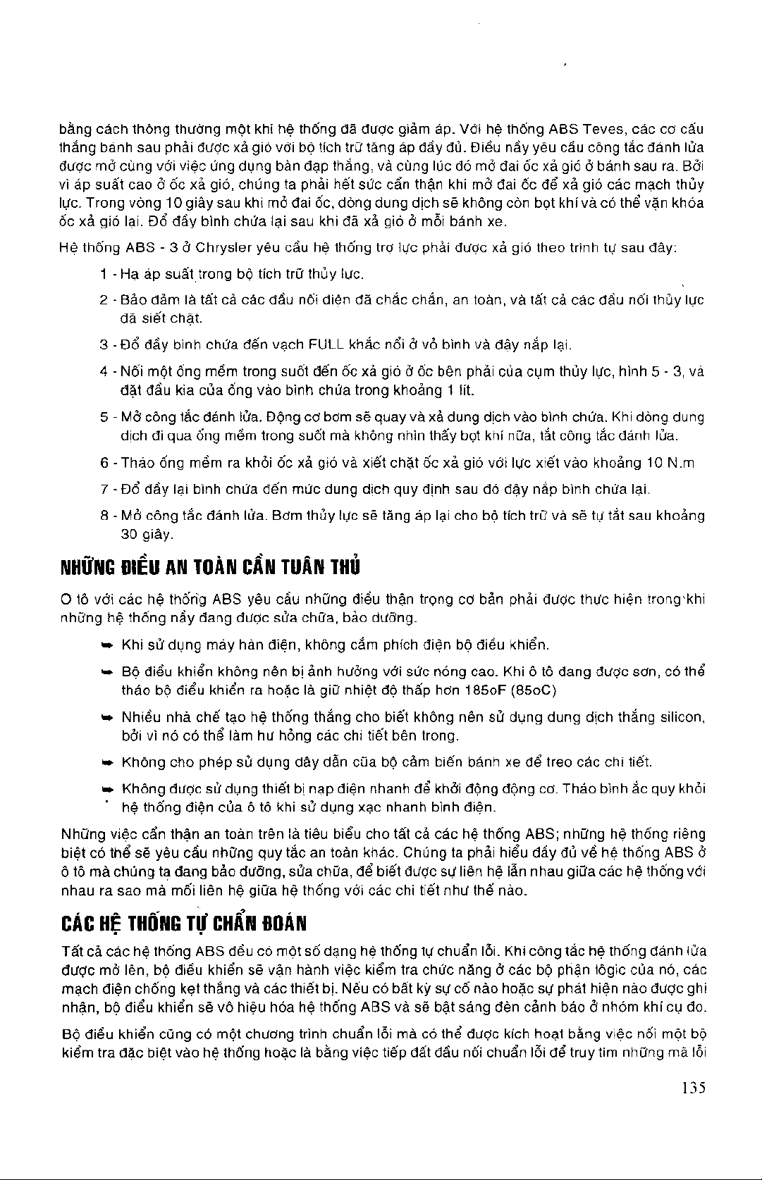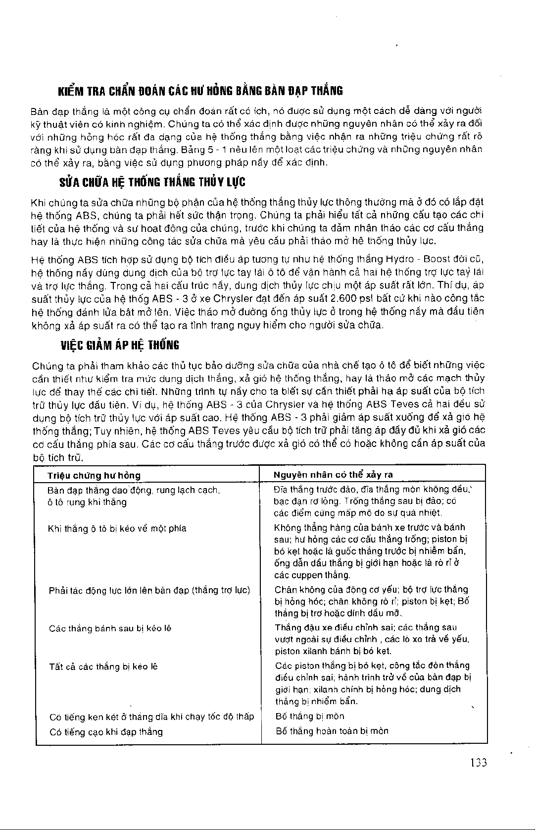 Hệ thống chống kẹt thẳng là một hệ thống thủy lực được điều khiển bằng điện tử. Chức năng ABS sẽ không làm việc nếu bộ phận thắng không làm việc tốt ở trạng thái bình thường của chúng. Chương này sẽ trang bị cho chúng ta một số hiểu biết về kiểm tra hệ thống chống kẹt thắng. Mời tham khảo.