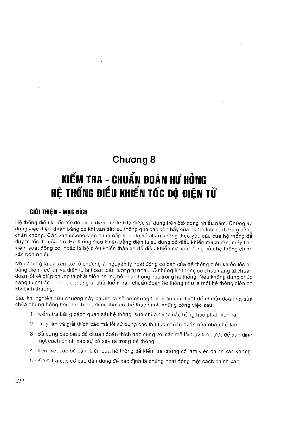 Sau khi nghiên cứu xong chương này, chúng ta sẽ có những thông tin cần thiết để chuẩn đoán và sữa chữa những hỏng hóc phổ biến, đồng thời có thể thực hành các công việc kiểm tra - chuẩn đoán hư hỏng hệ thống điều khiển tốc độ điện tử.