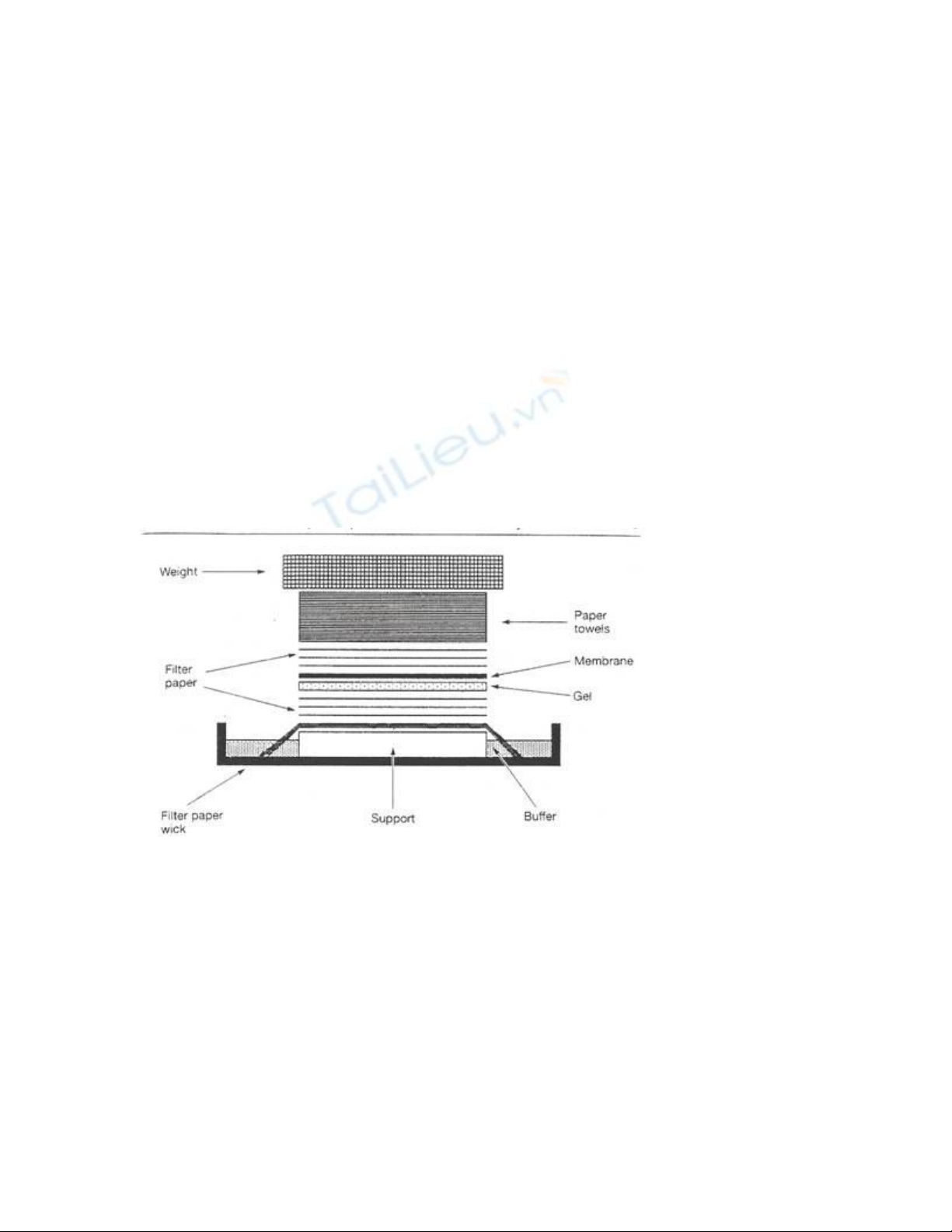 trên được đặt trên cùng phần gel và màng kẹp giữa giấy lọc như trong hình 1.6.