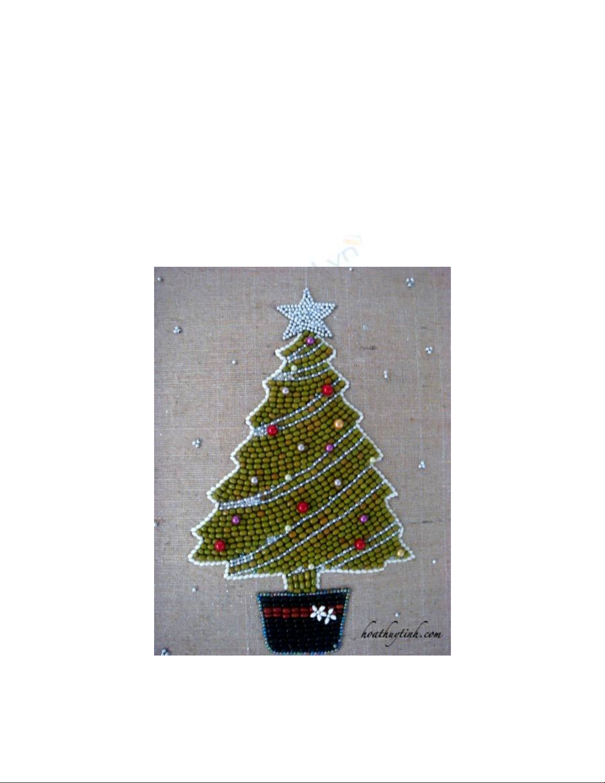 - Dùng hạt nếp dán viền cây thông. Sau đó dán hạt cườm theo các