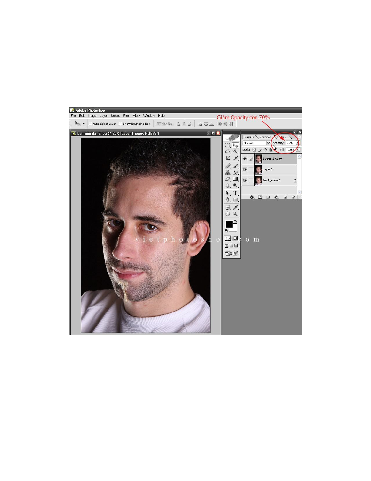 4- Nhấn phím V rồi nhấn phím số 7 để giảm giá trị Opacity