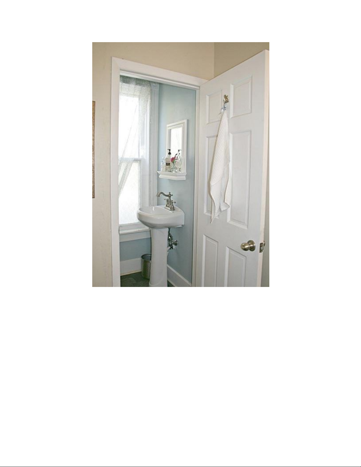 dụng tủ dưới chân bồn để tạo cảm giác thoải mái. Gương cũng thay mới,