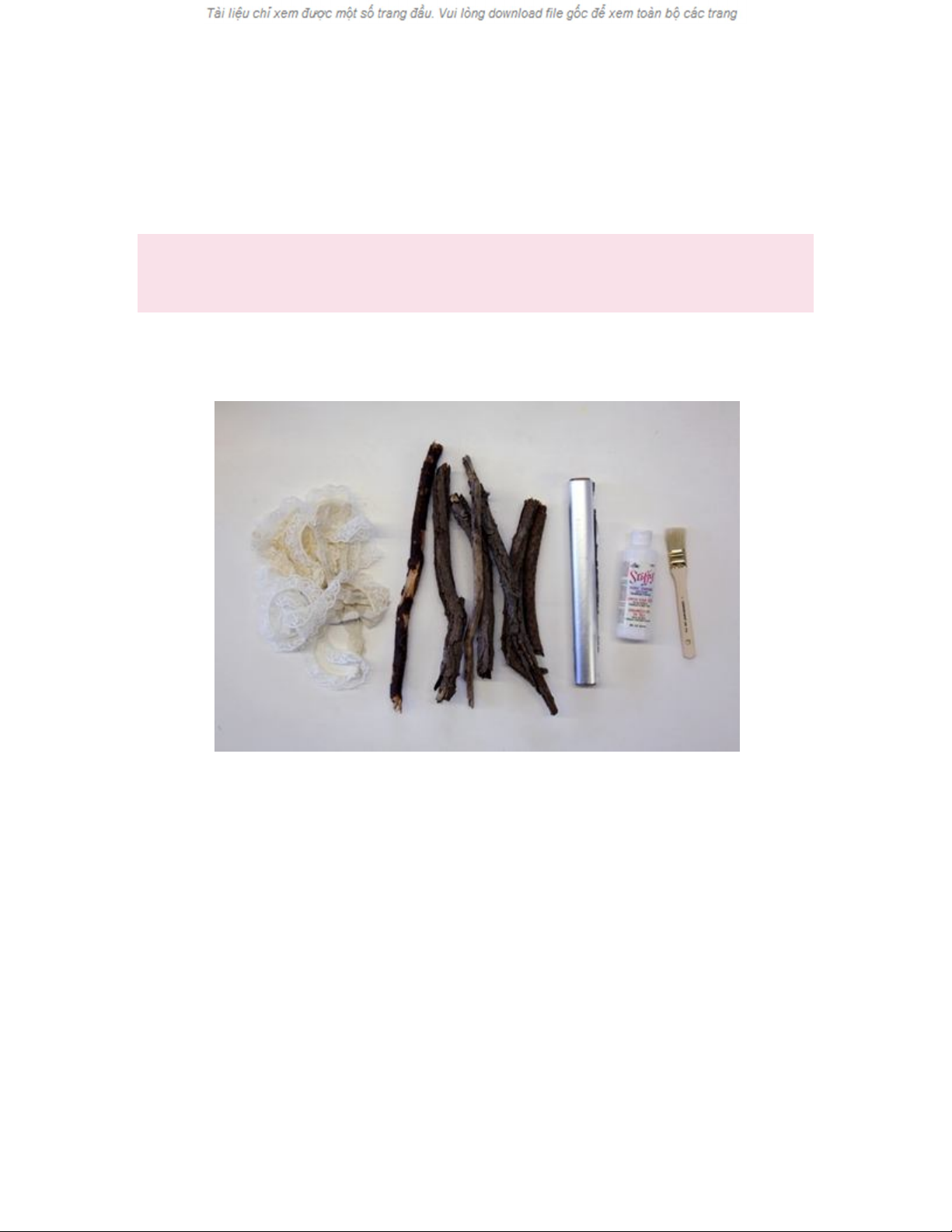 - Cành cây khô; vải ren; keo dán; chổi lông; dao; nhôm lá (lá nhôm)