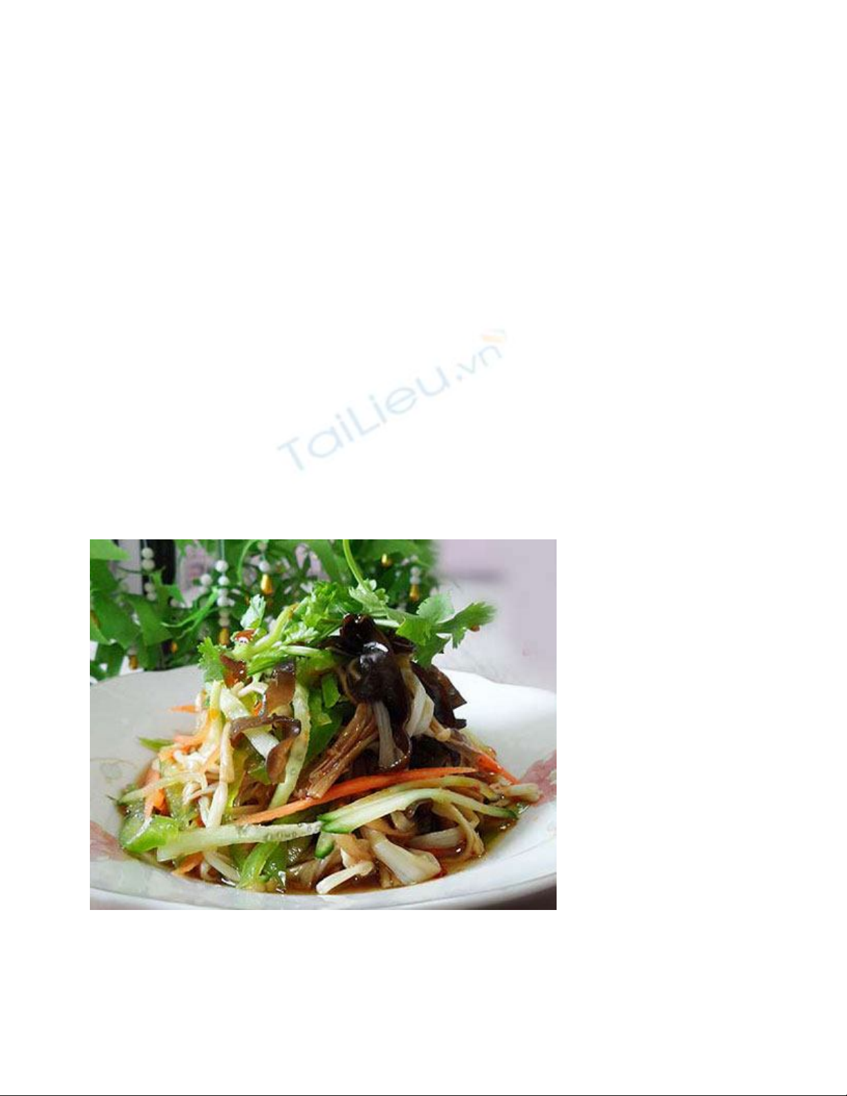 ráo nước. Trộn nấm cùng các loại rau như dưa chuột,