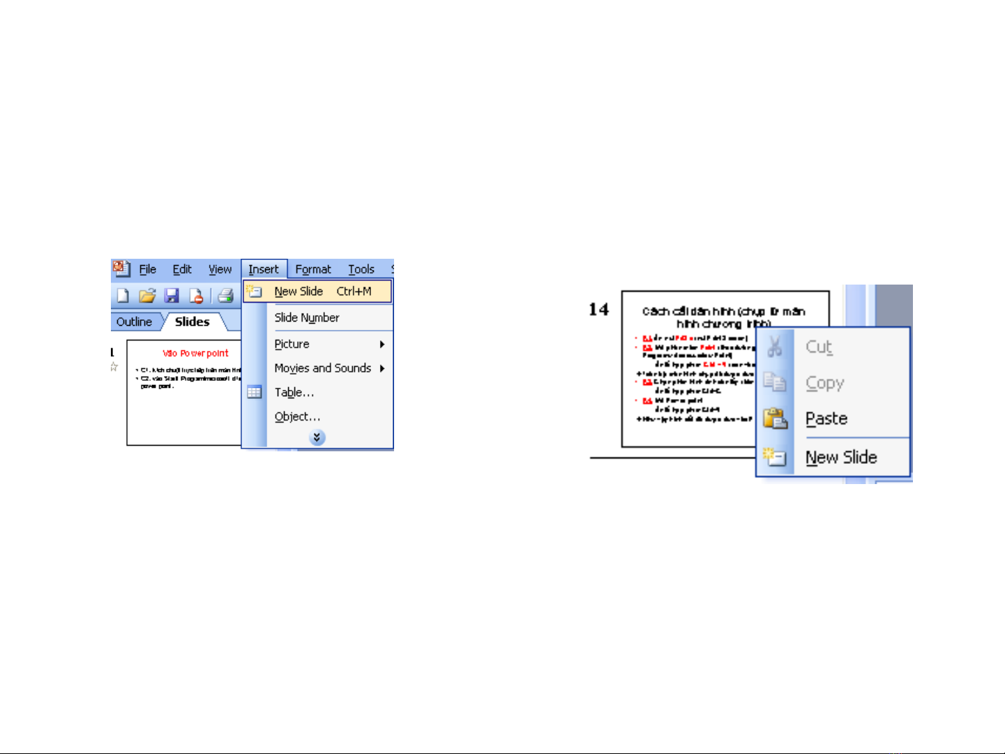 C2: kích chu t ph i t i v trí c a slide c n chènộ ả ạ ị ủ ầ