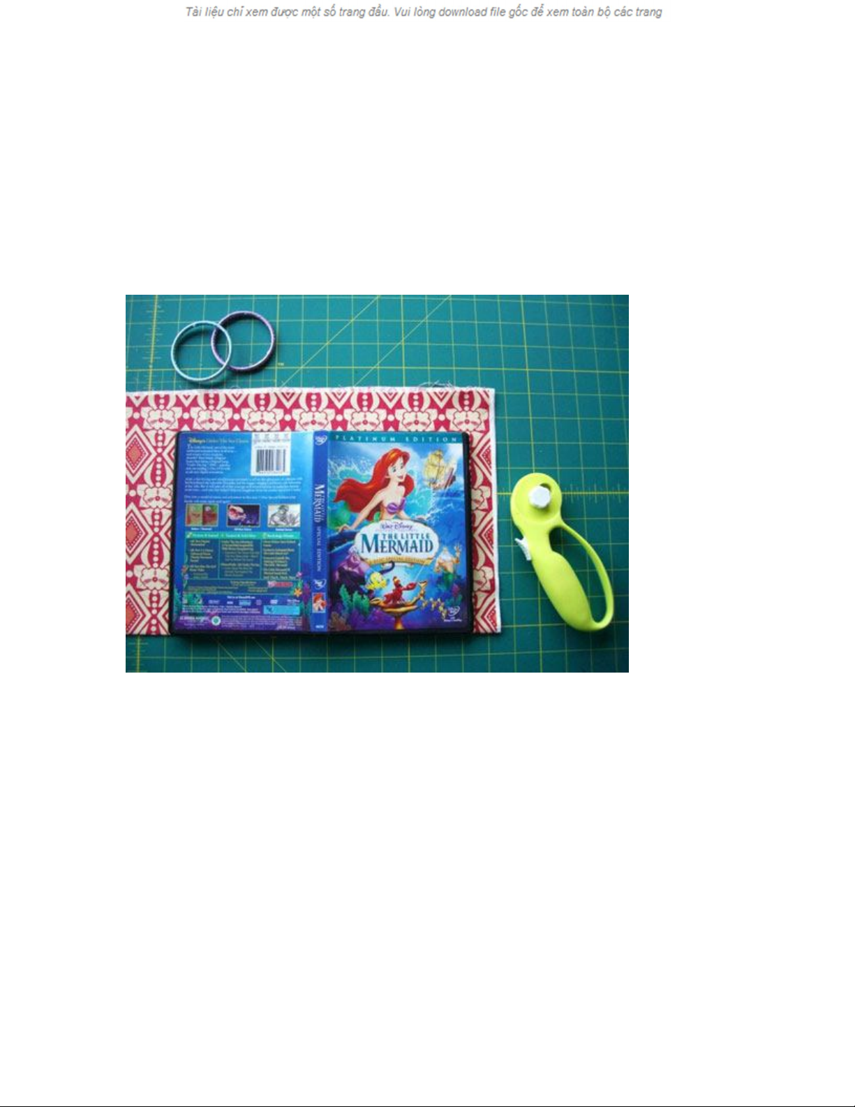 Bước 1: Lấy hộp đĩa DVD để đo, dùng kéo cắt vải theo viền hộp.Bạn cắt lấy