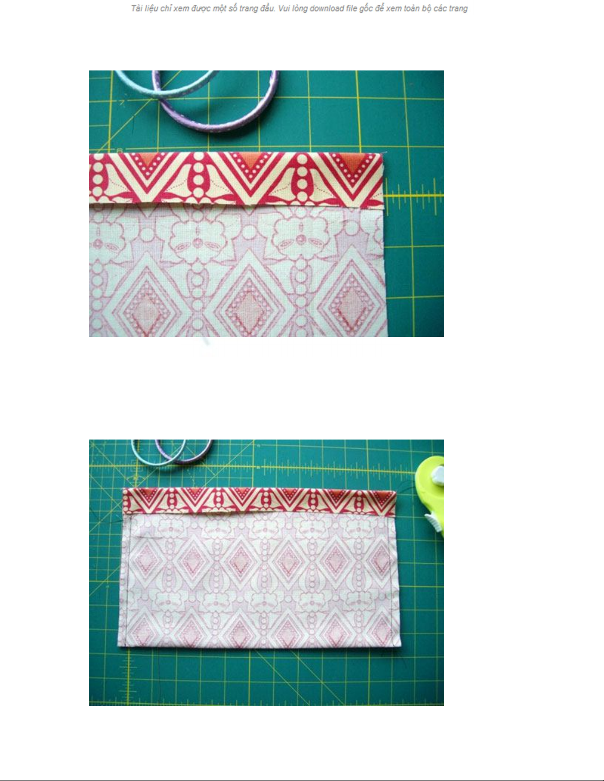 Bước 2: Gập viền của mảnh 1 lại. Chiều rộng bạn gập khoảng 1cm, chiều