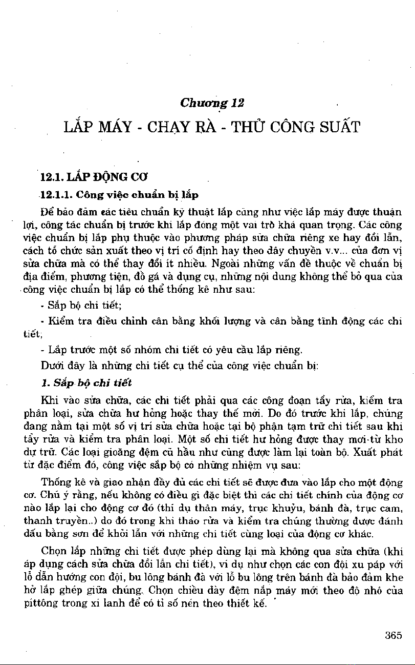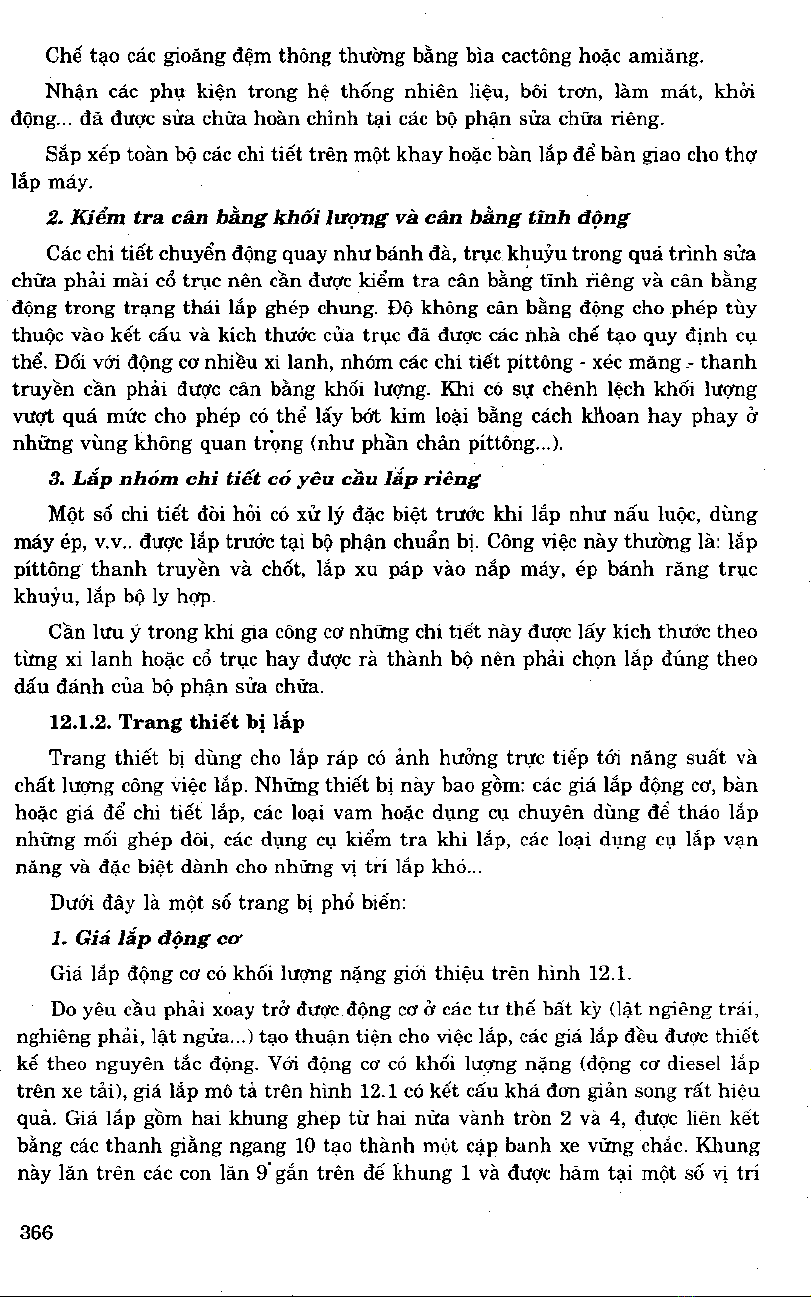 Để đảm bảo các tiêu chuẩn kỹ thuật lắp cũng như việc lắp máy được thuận lợi, công tác chuẩn bị trước khi lắp đóng một vai trò khá quan trọng. Các công việc chuẩn bị lắp phụ thuộc vào các phương pháp sửa chữa riêng xe hay đổi lẫn, cách tổ chức sản xuất theo vị trí cố định hay theo day chuyền........