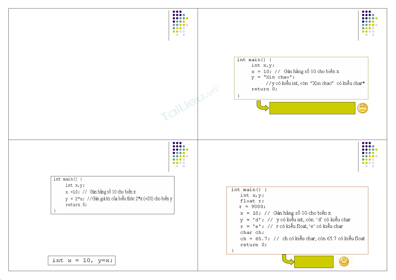 lKiểu của biểu thức vàcủa biến phải giống nhau