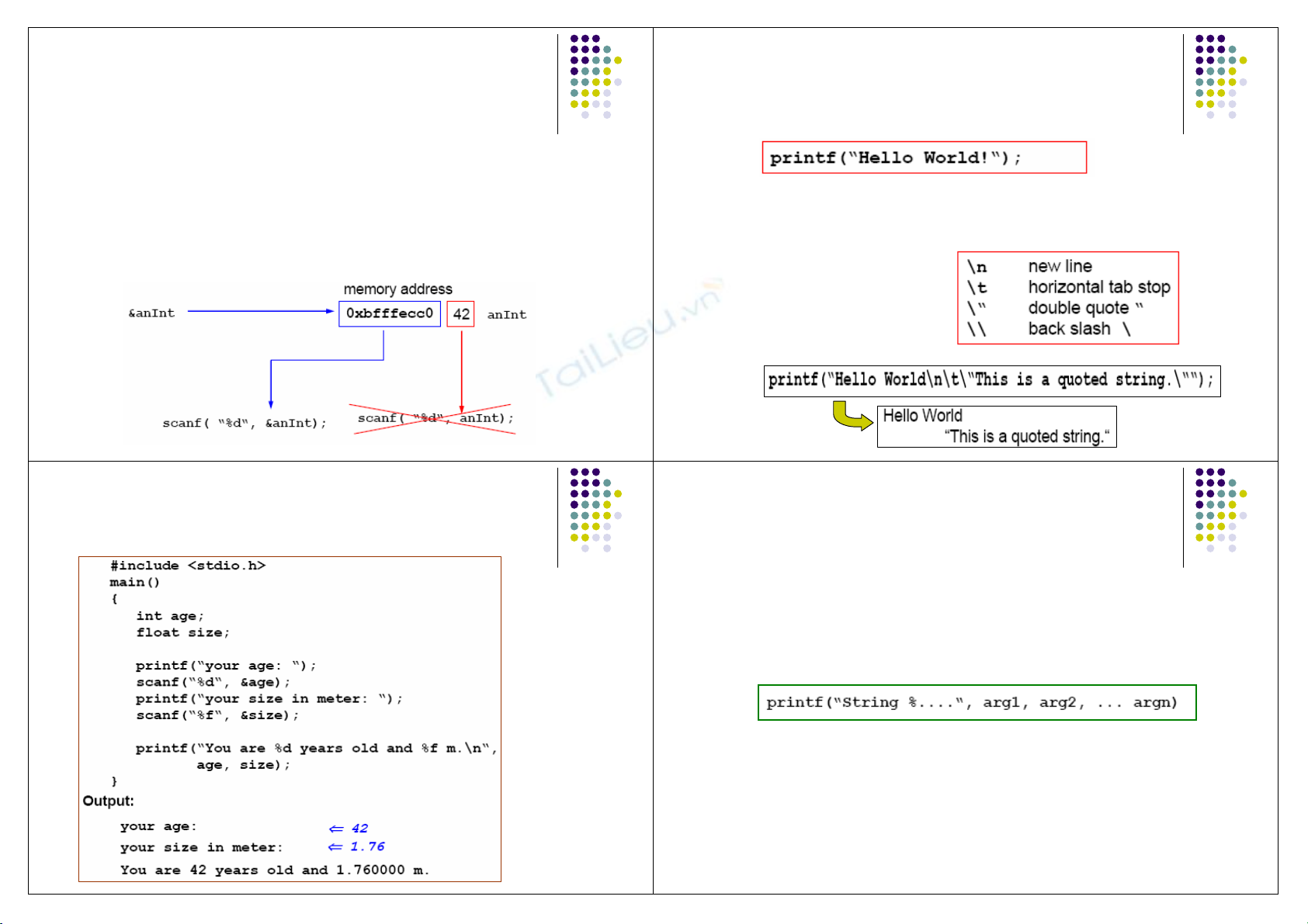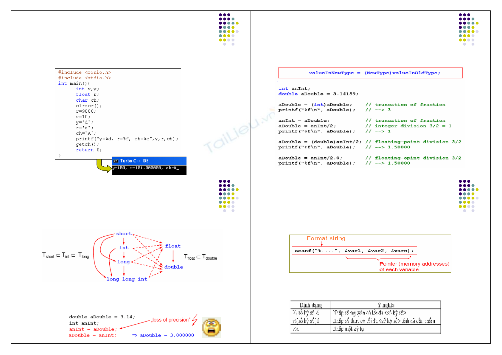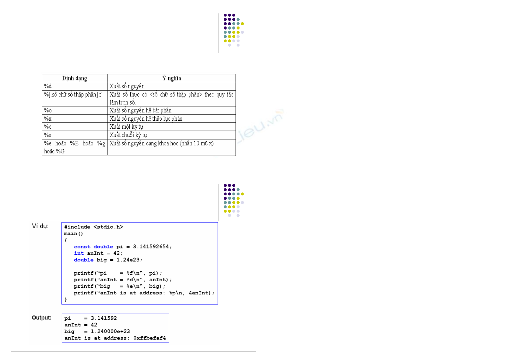 lChuỗi định dạng (format string): để qui định kiểu dữ