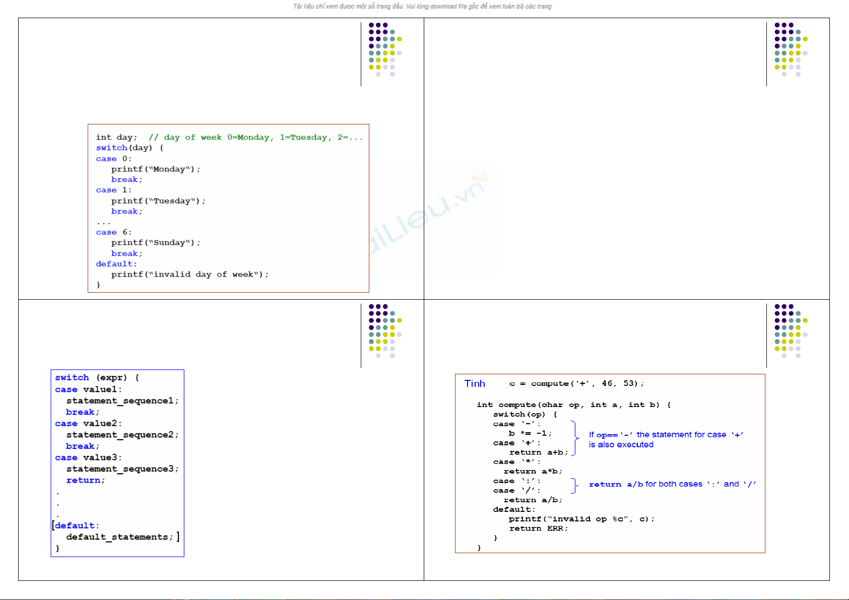 lNếu break/return vắng mặt, câu lệnh trong các case