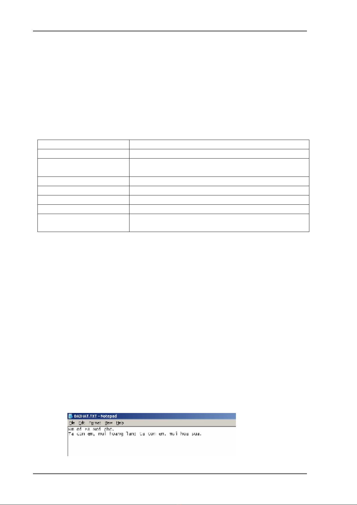 Nội dung tập tin Baihat.txt khi được mở bằng trình soạn thảo văn bản Notepad.