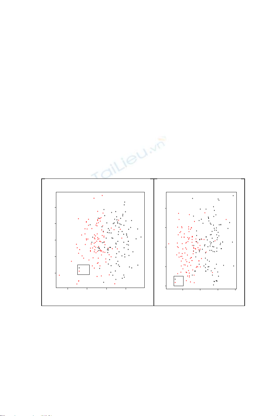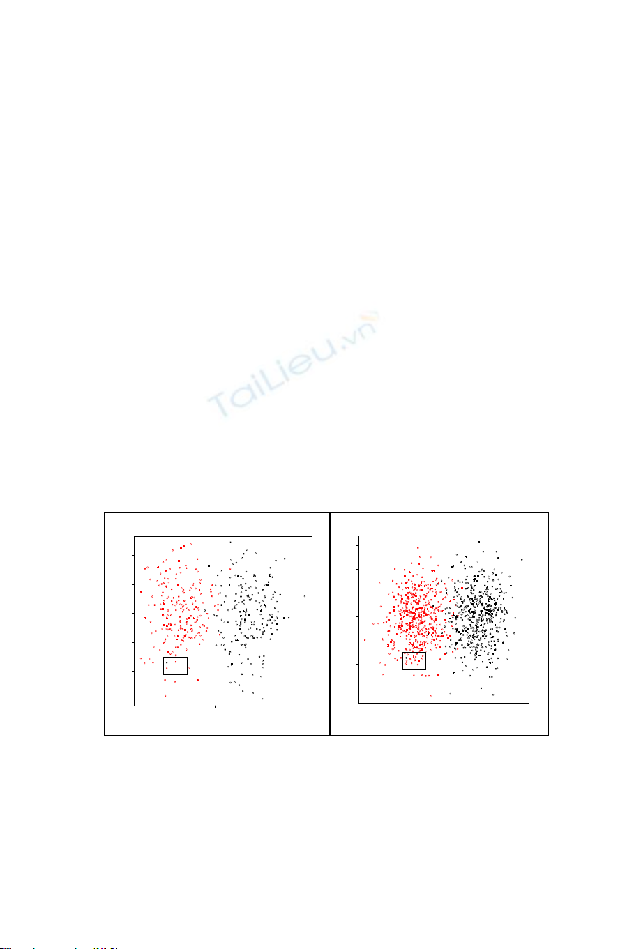sau đây, chúng ta đầu tiên vẽ một biểu đồ tán xạ với 200 số liệu, và số trung
