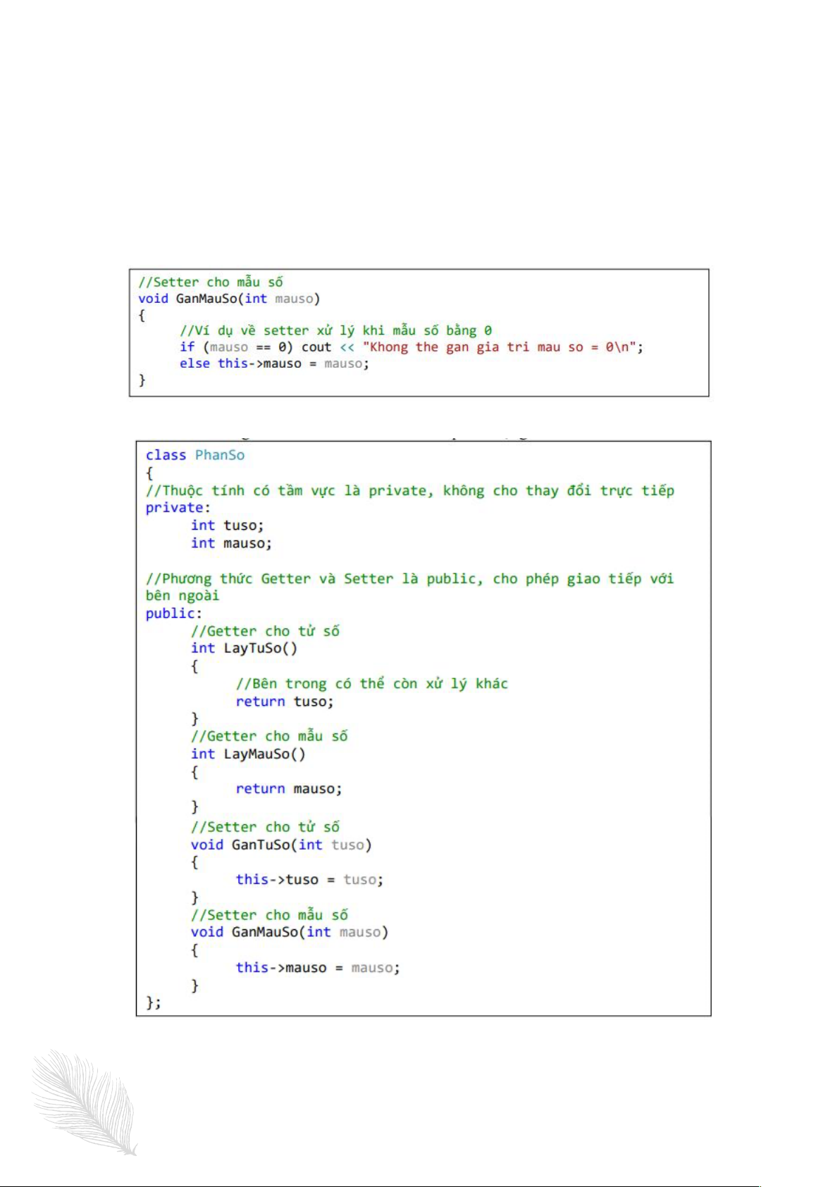 • Tham khảo ví dụ cho getter và setter của lớp đối tượng Phân số: