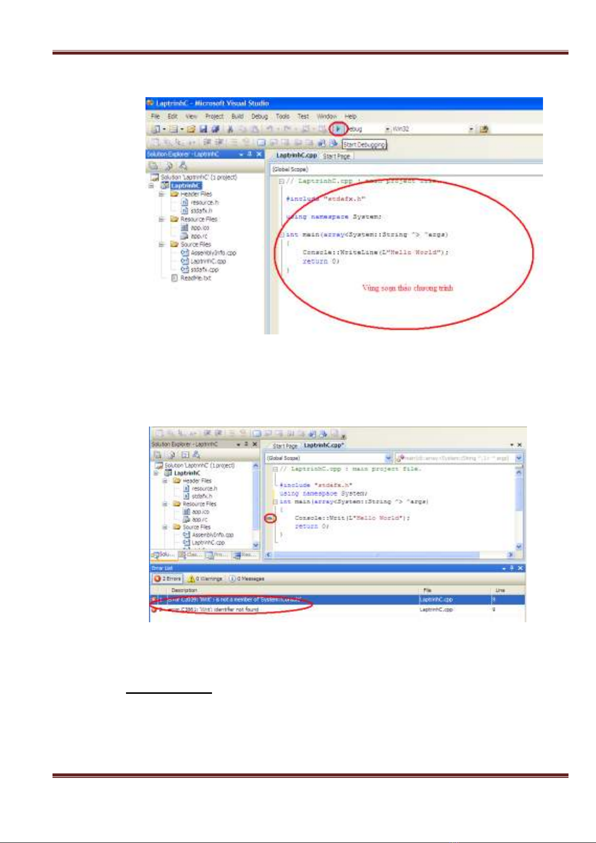 Khi Debug, nếu chương trình co lỗi về mặt cú pháp, VS sẽ thông báo các lỗi này trong cửa