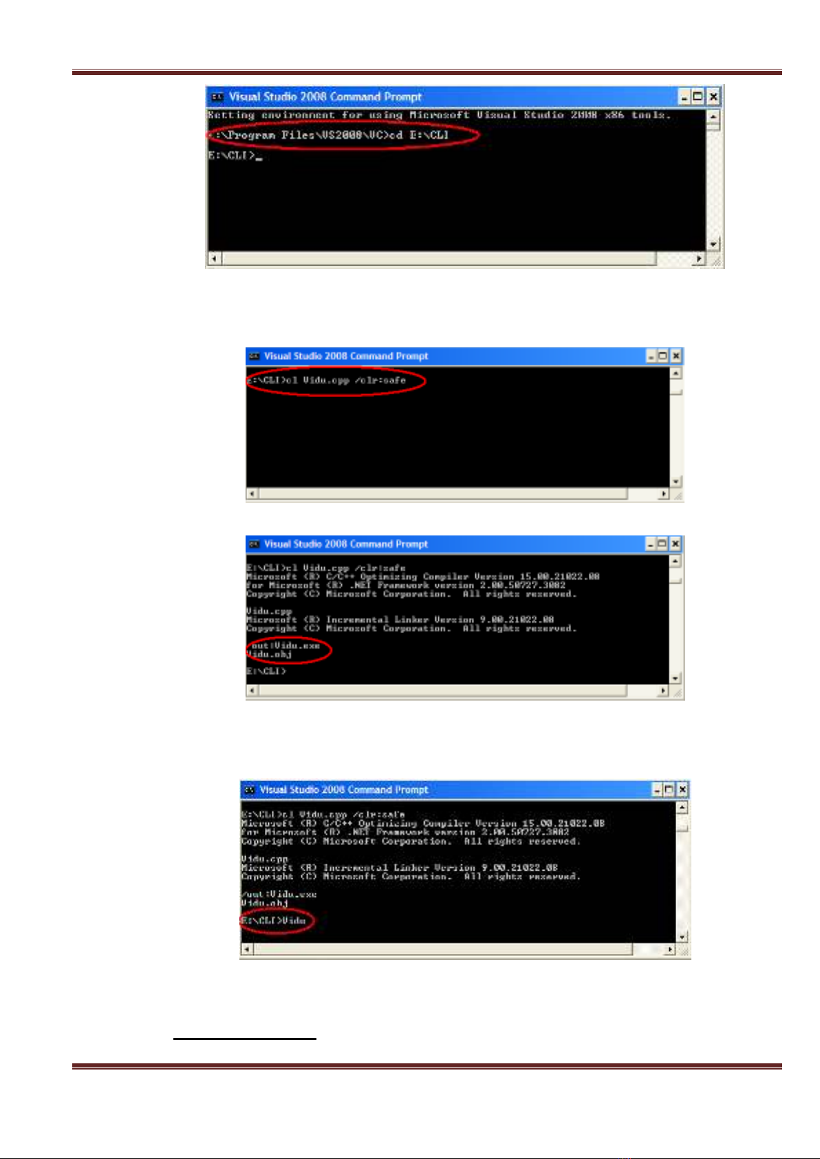 bằng lệnh cd. Ví dụ nếu tập tin Vidu.cpp được lưu trong thư mục CLI trong ổ E thì nhập cd