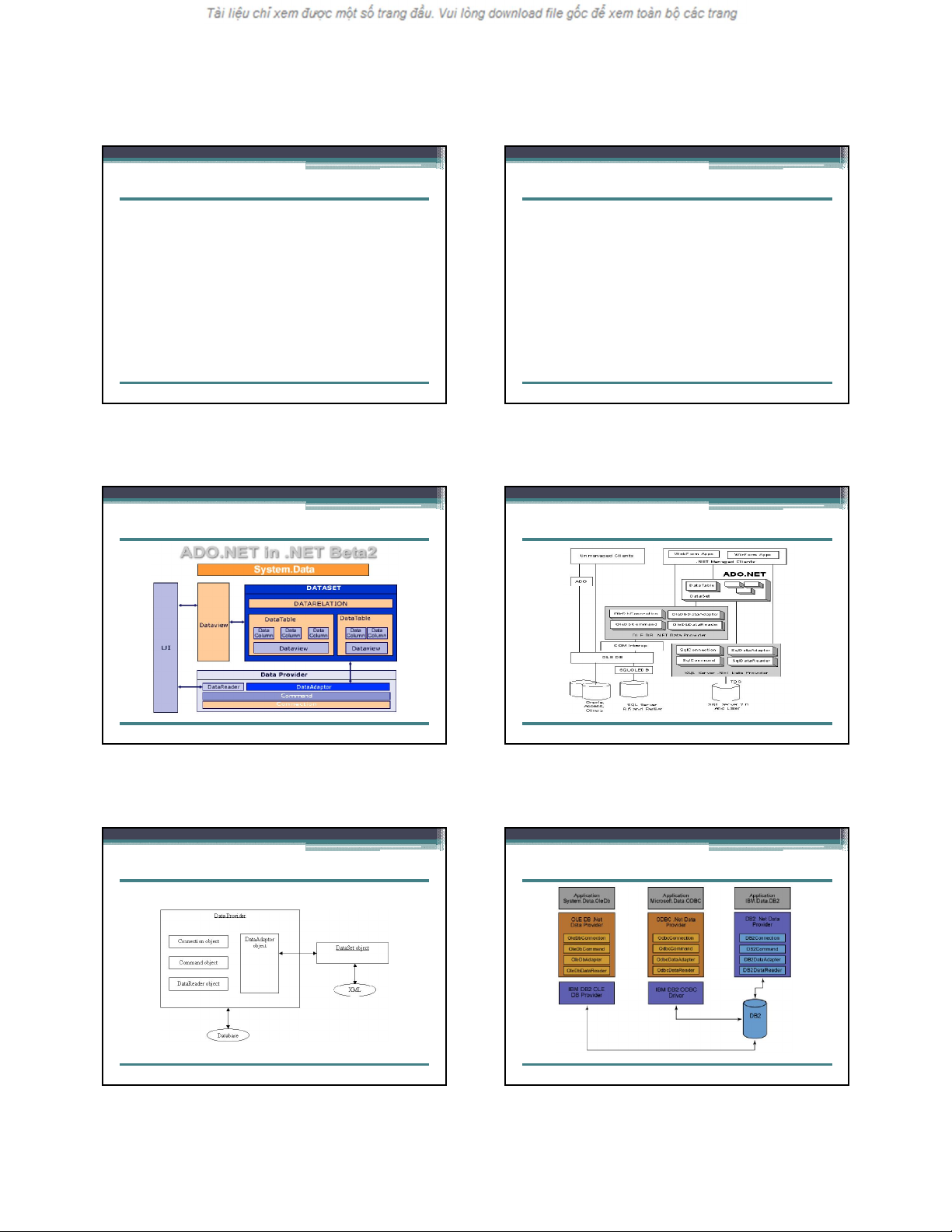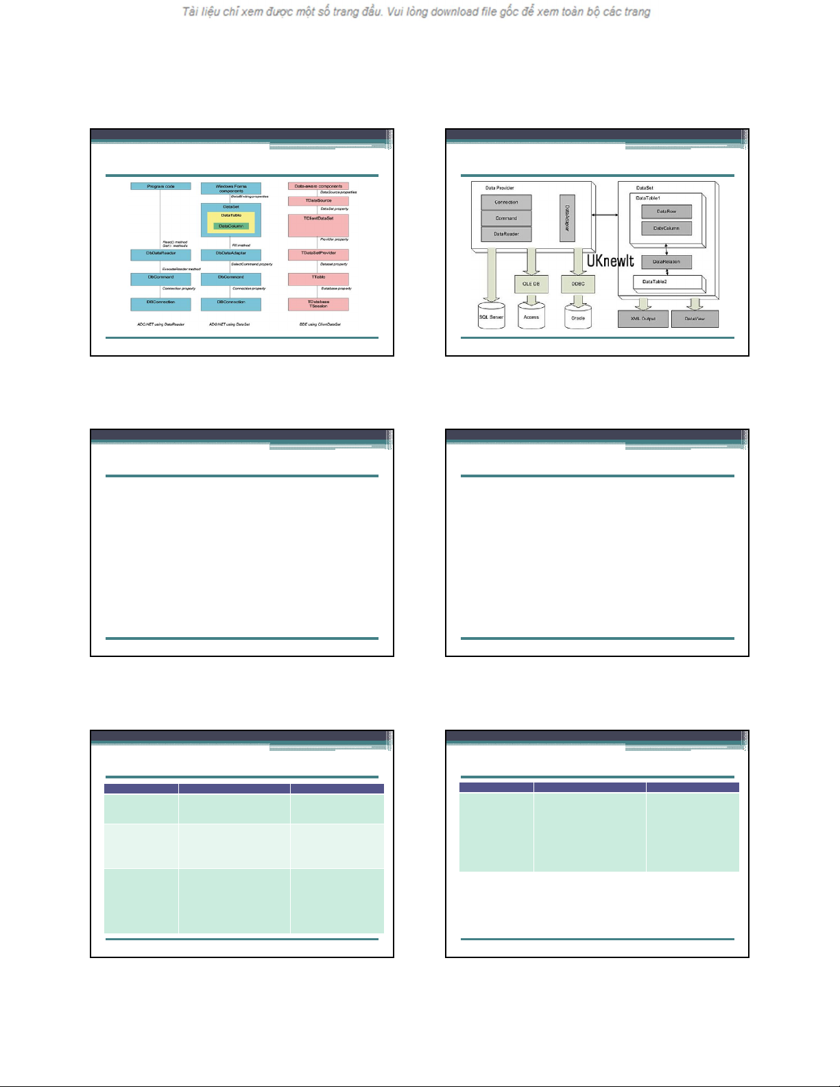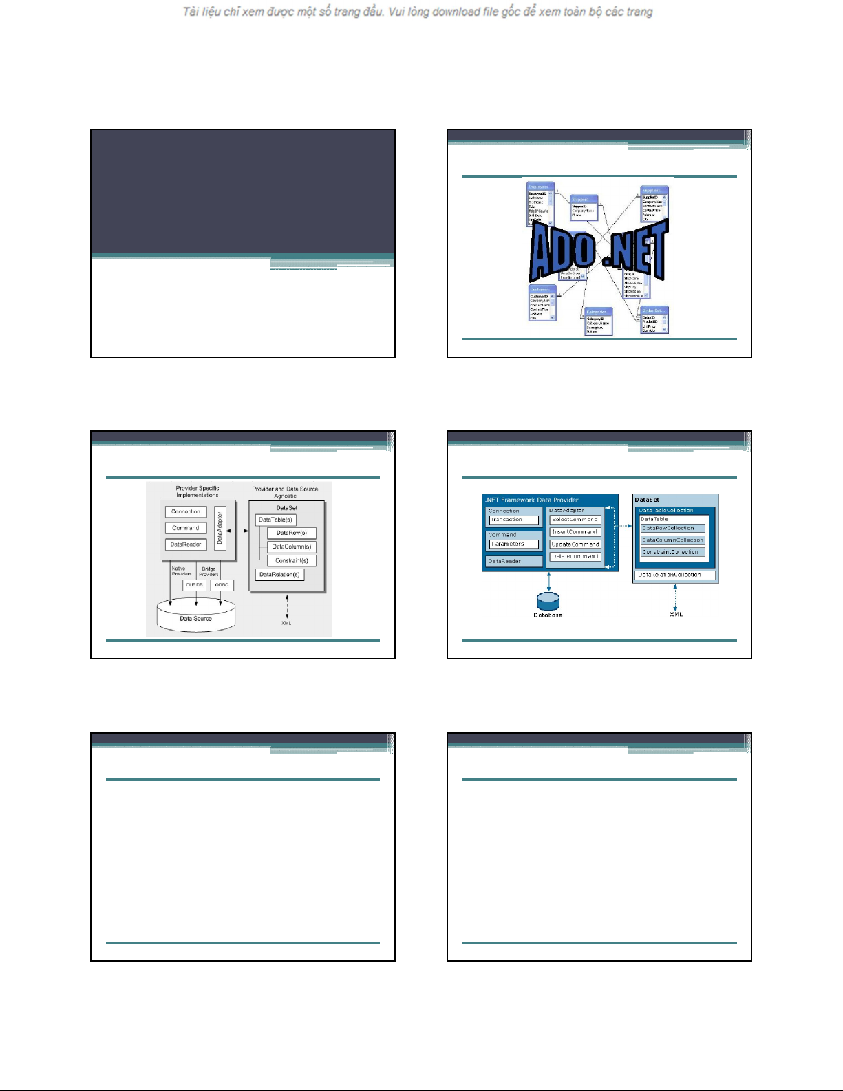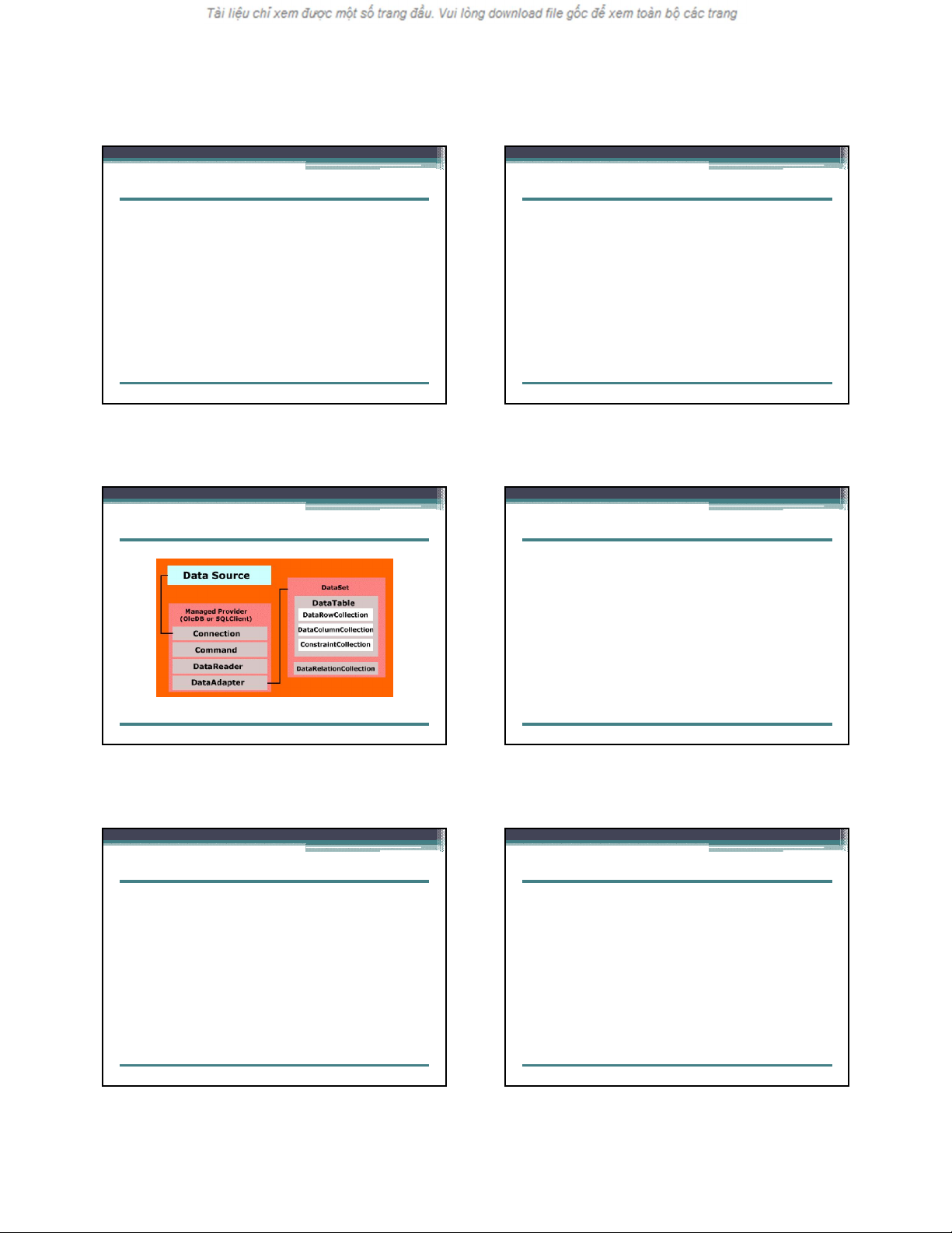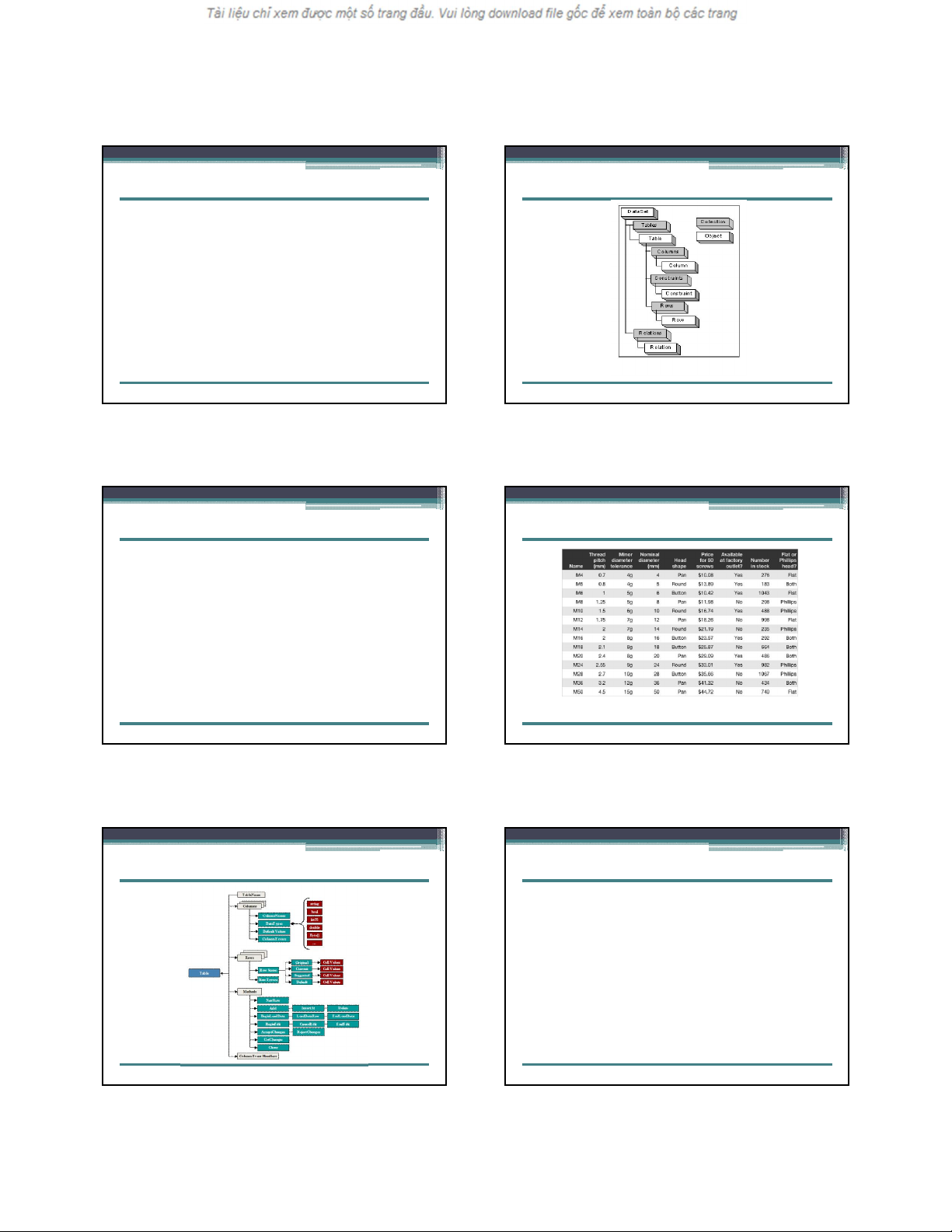với 1 cột), DataRelation (tương đương với các quan hệ). Ngoài