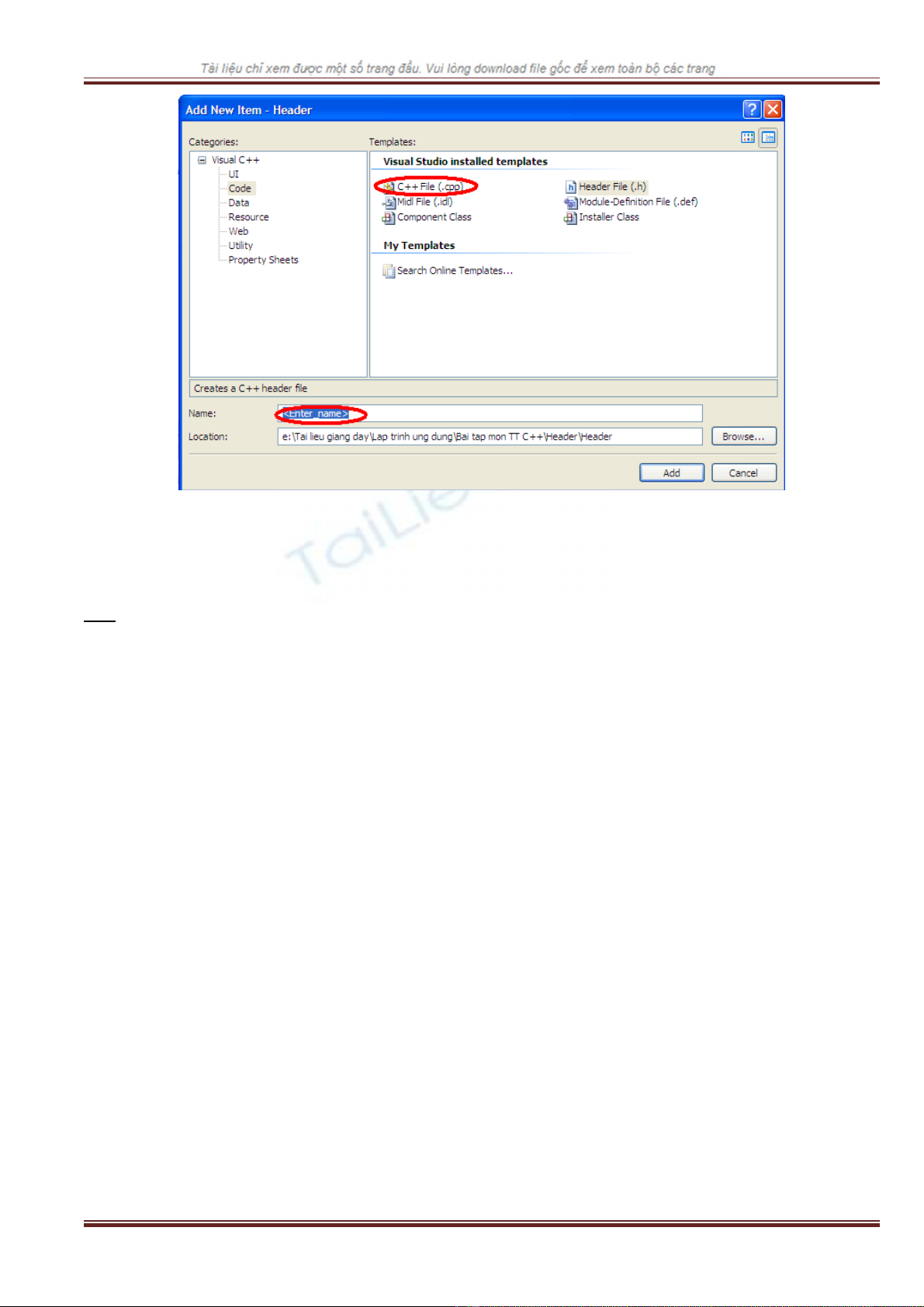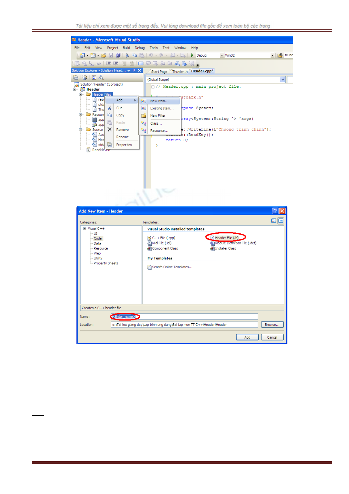 Trong c a s Add New Item, ch n ki u file là header và nh p tên c a file vào ô Name.ử ổ ọ ể ậ ủ