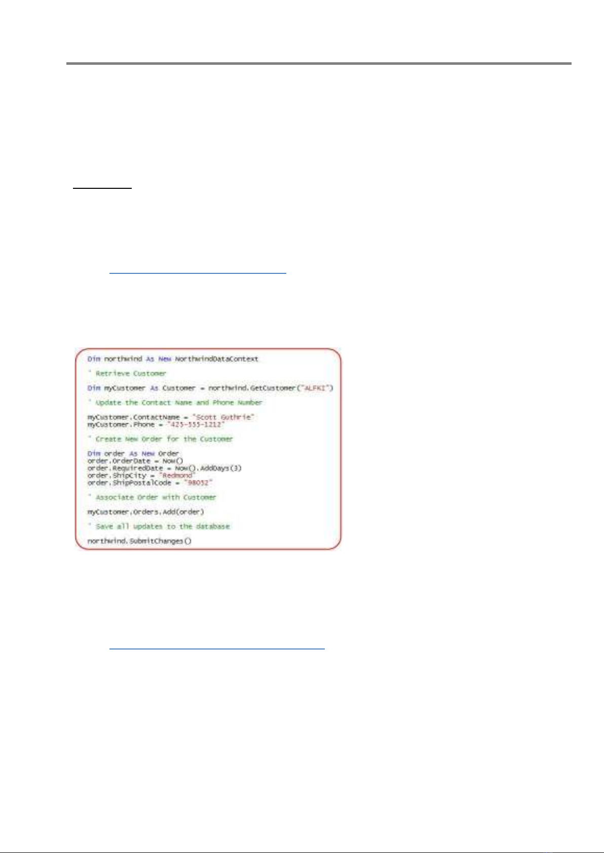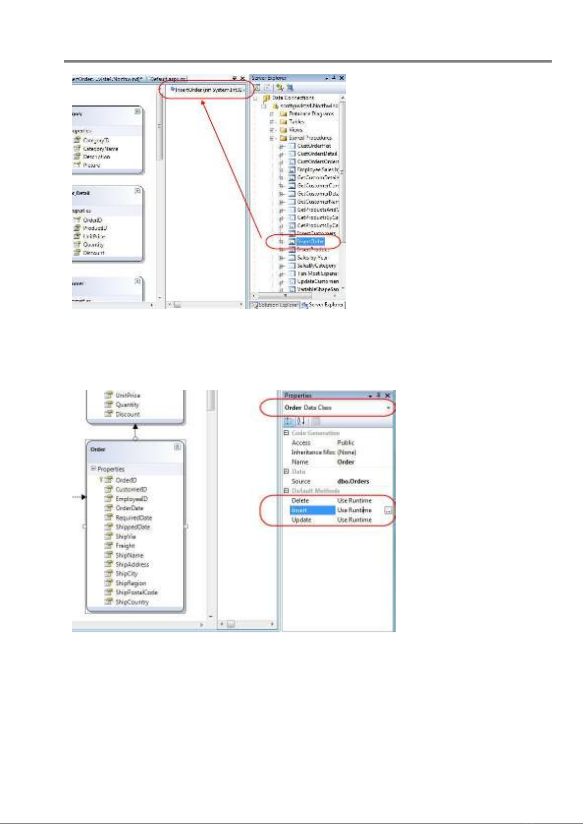 và phương thức SubmitChanges() được gọi, thủ tục InsertOrder sẽ được thực thi thay cho câu lệnh