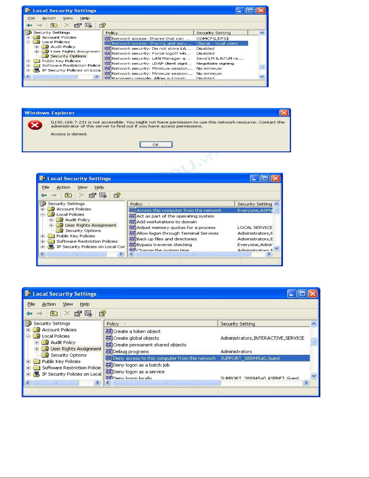 5 - L i "Guest Only": vào Local Security c a máy B (máy đích) / security option / Network Access/ ch nh thành Classicỗ ủ ỉ