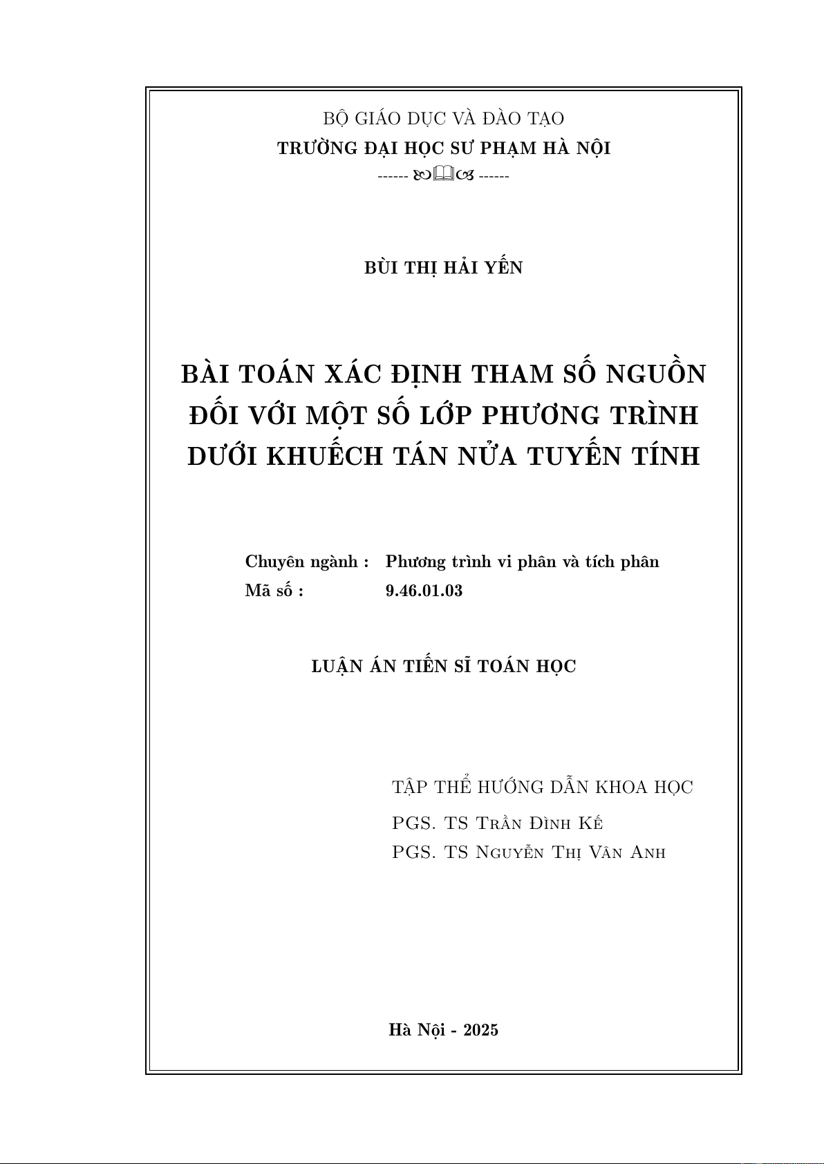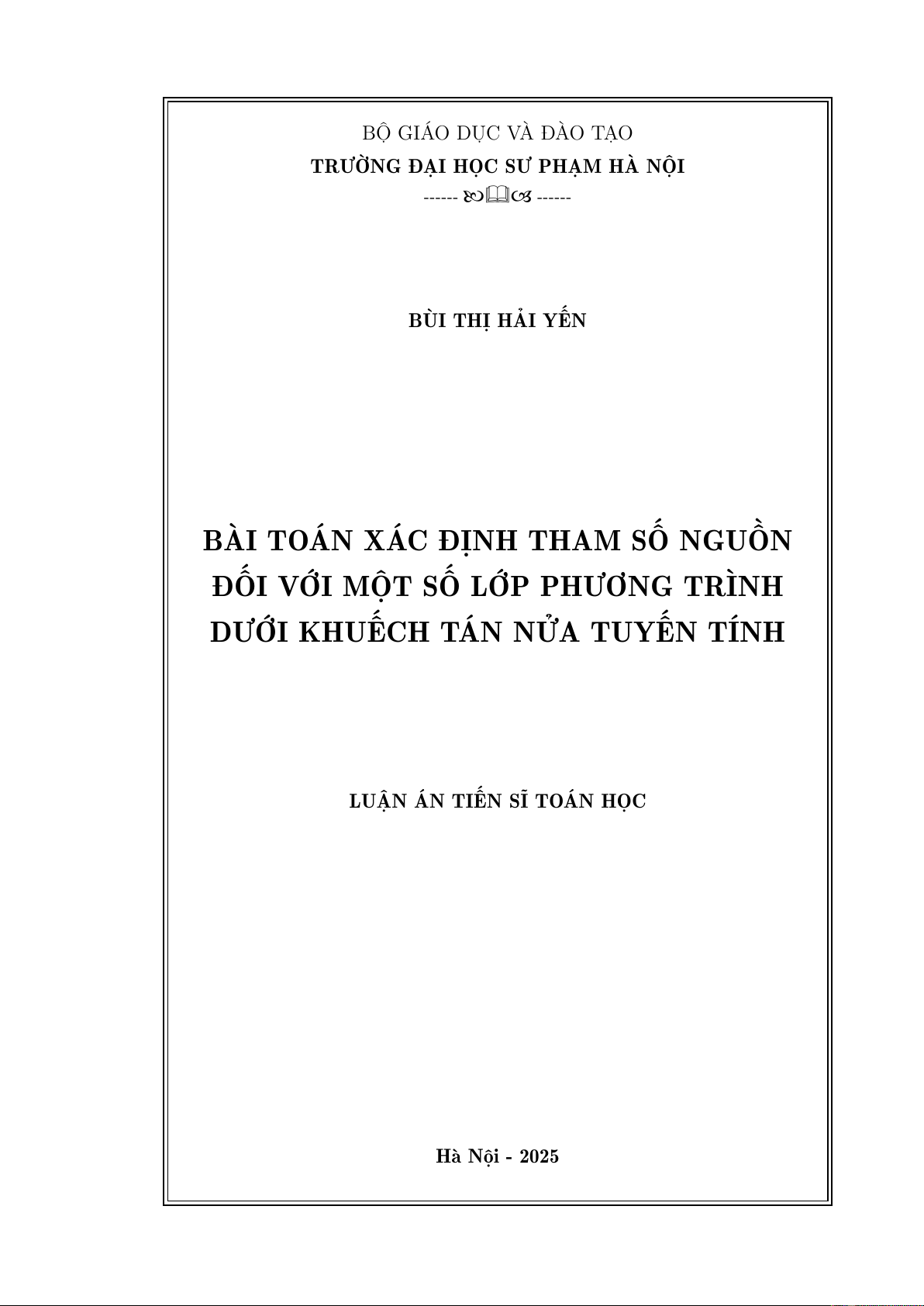 luận án với đề tài Bài toán xác định tham số nguồn đối với một số lớp phương