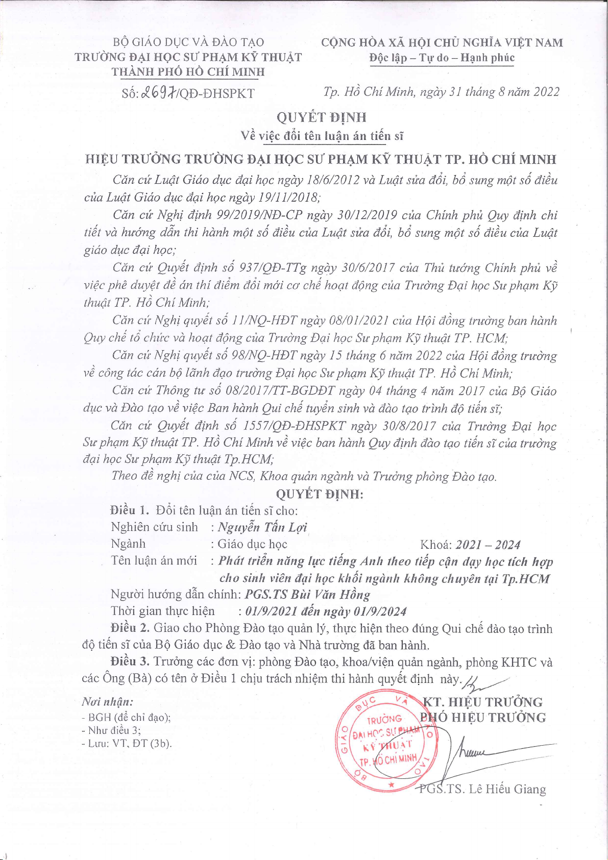 Sư phạm Kỹ thuật Thành phố Hồ Chí Minh một cách nghiêm túc, trung thực
