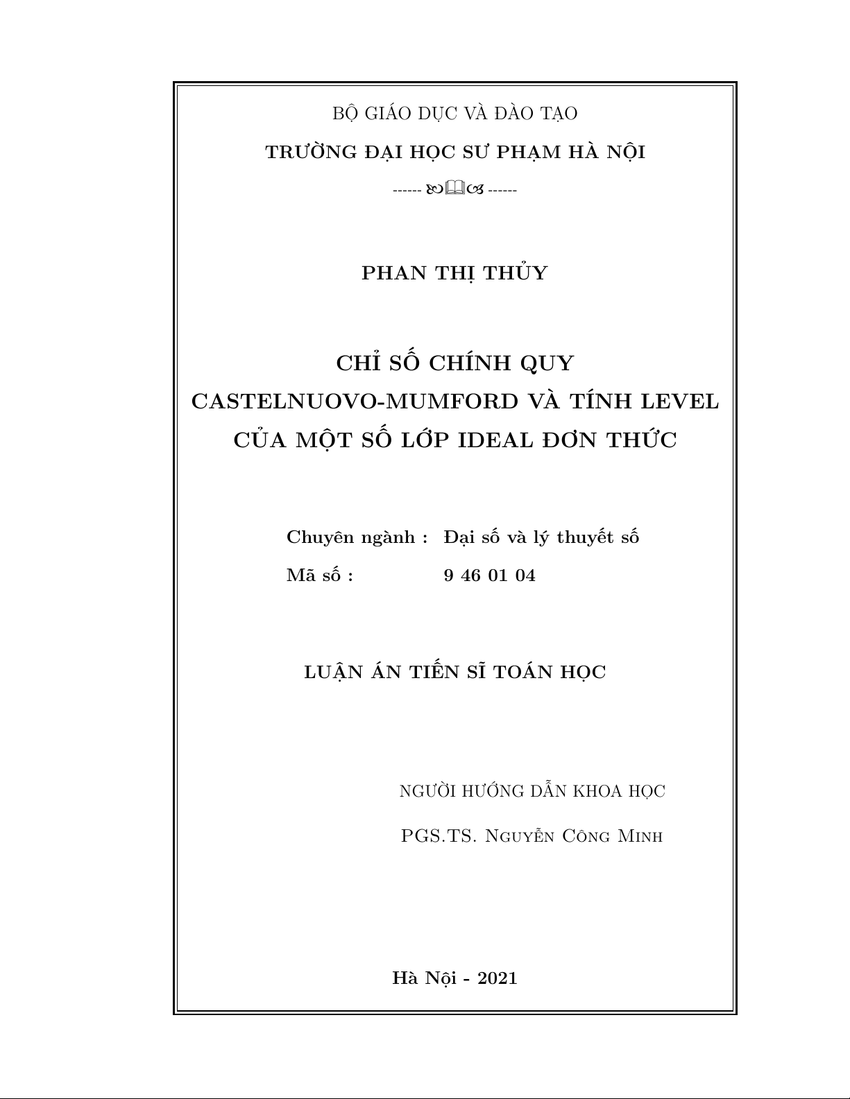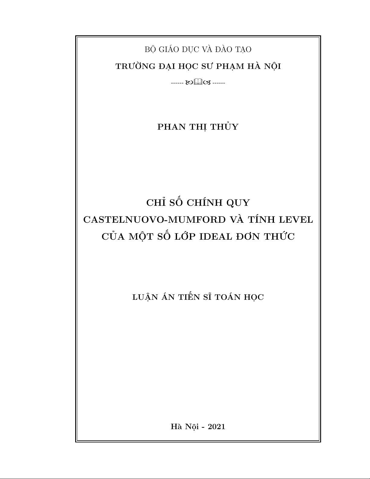 1.1 Chỉ số chính quy Castelnuovo-Mumford . . . . . . . . . . . 17